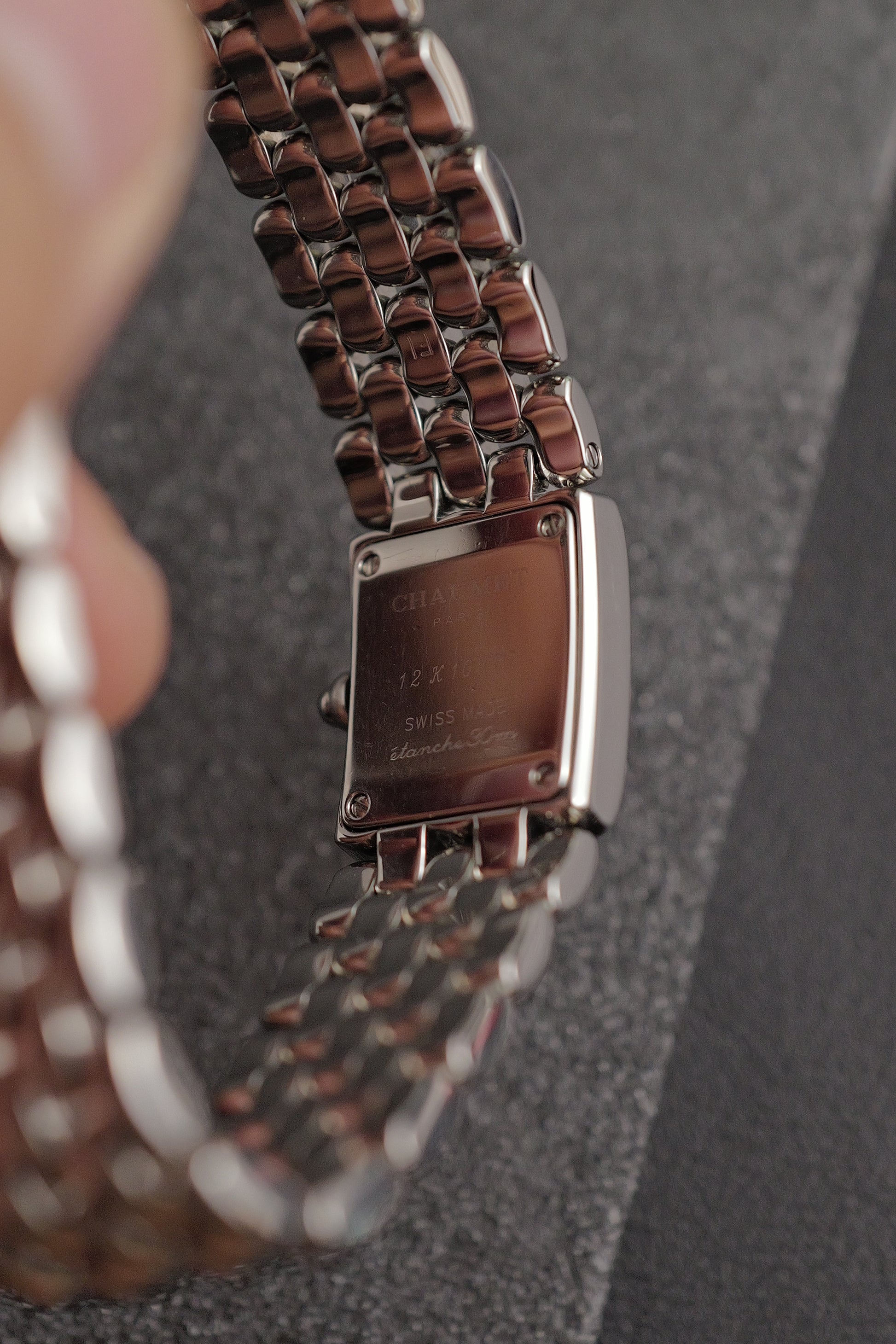 | Watch Summary | a bracelet style chaumet watch, part accessory part watch. Love the bead of rice bracelet. A unique variation with Factory Dotted Diamond Markers. Chaumet made gorgeous watches during the late 90s to 2000s including their pebble series and much more. watch bracelet fits up to 16cm |