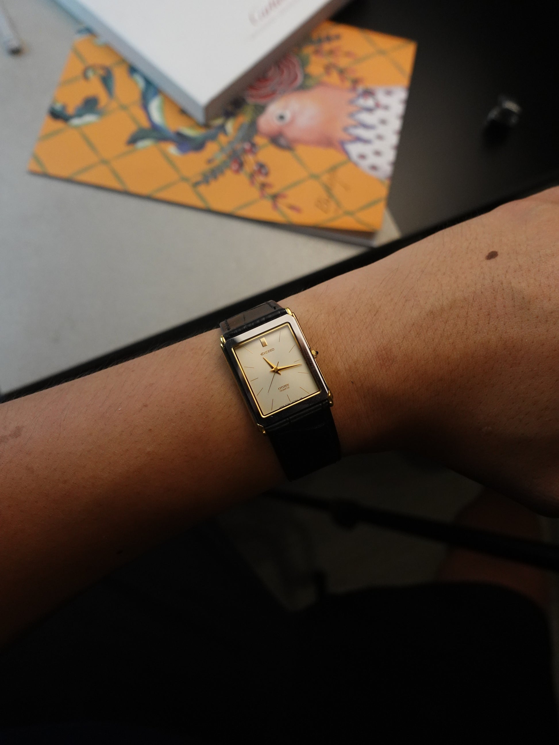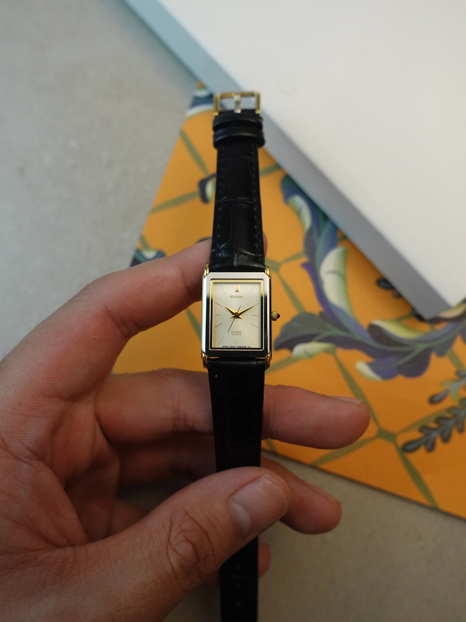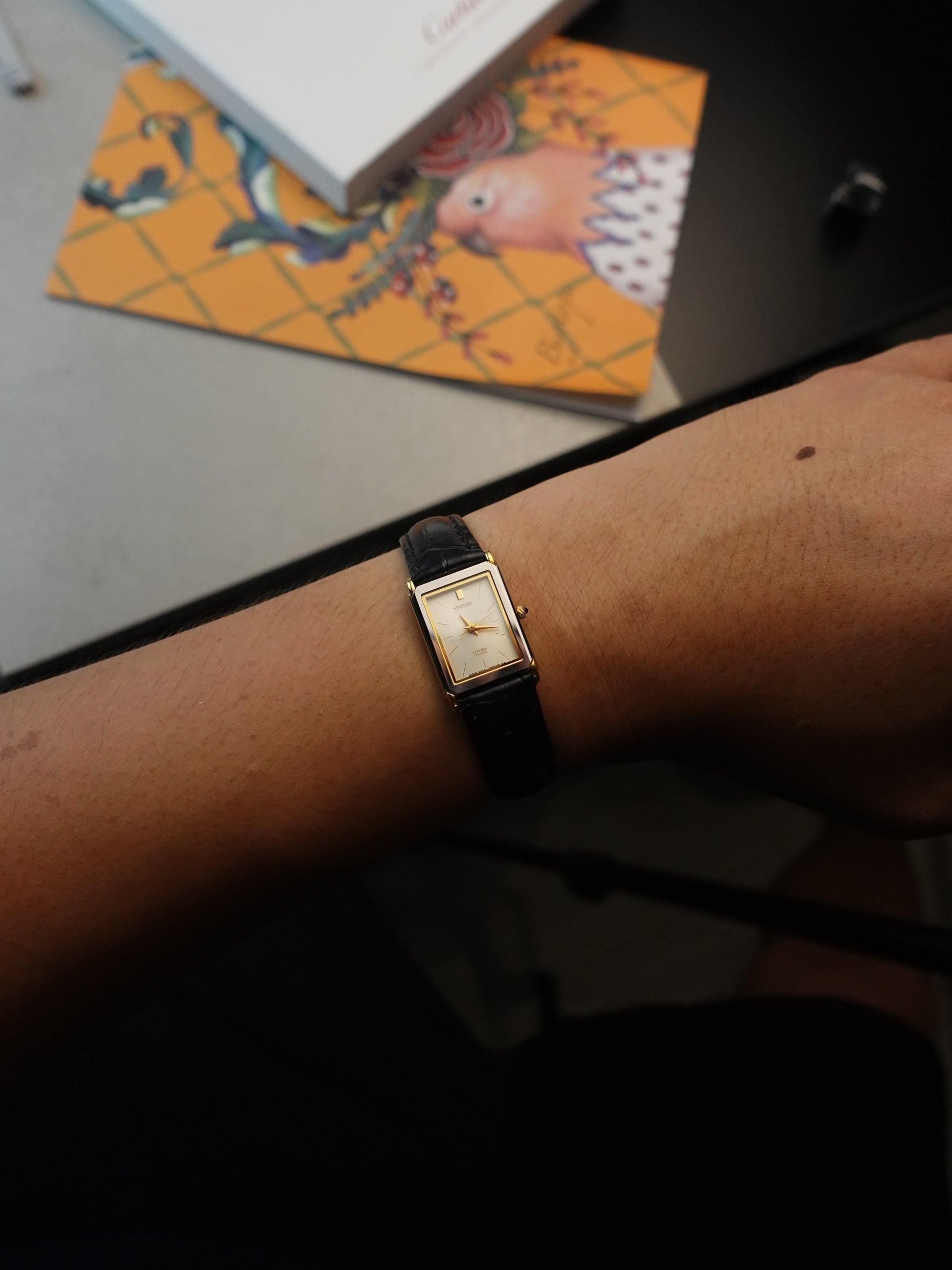 A like-new condition citizen exceed. comes with a cream like dial on both the ladies and men's. original caseback sticker is still intact. comes with new strap as well.