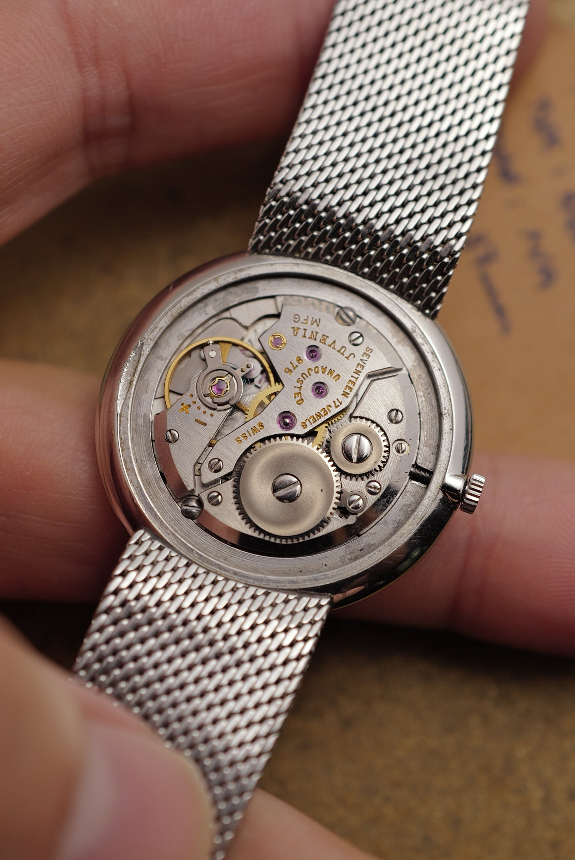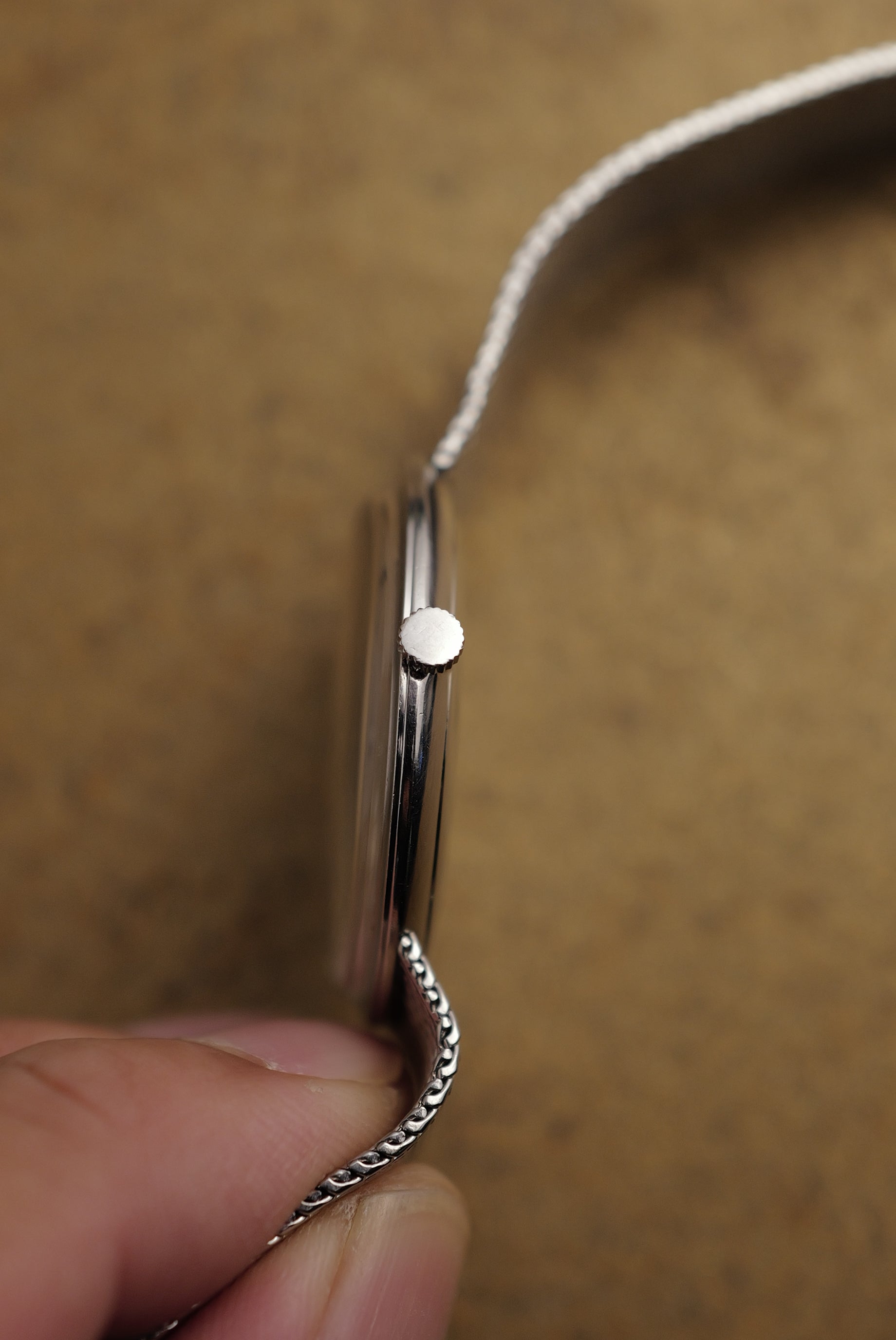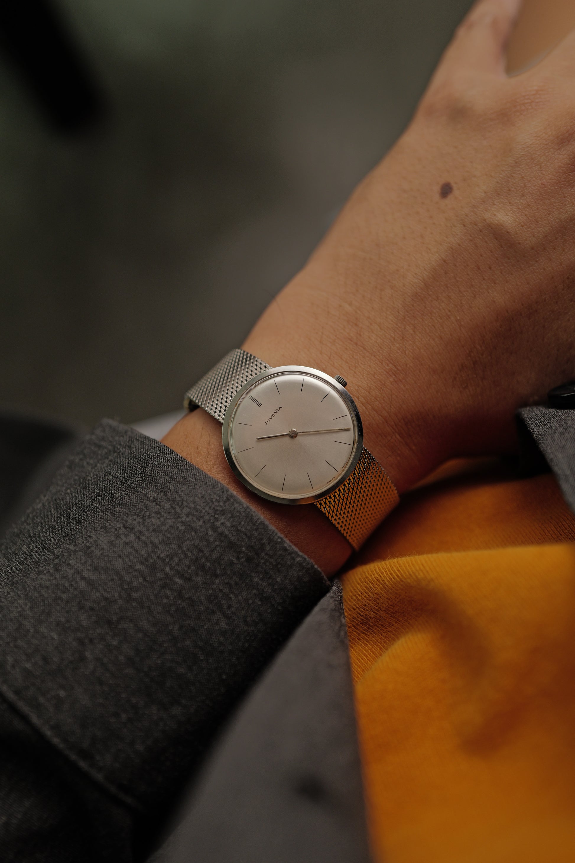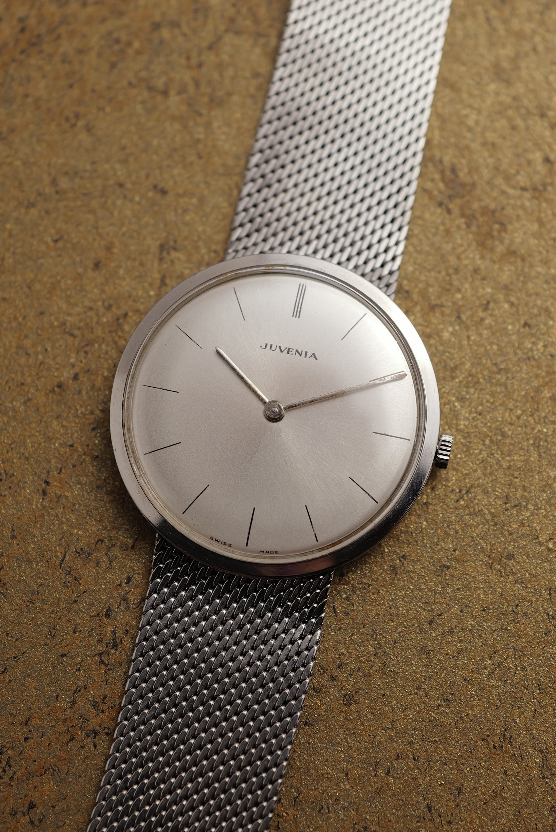 Watch Summary The term Disco Volante (Italian for flying disc or flying saucer) is something common we use for watches without lugs, and its essentially super fitting for this juvenia. A sunburst silver dial with a light finish the middle, a sort of fume dial design. Extremely beautiful as its as simple as it gets. strap slides in and is able to fit all wrist but generally it would look better on a men's wrist due to the nature of the bracelet.