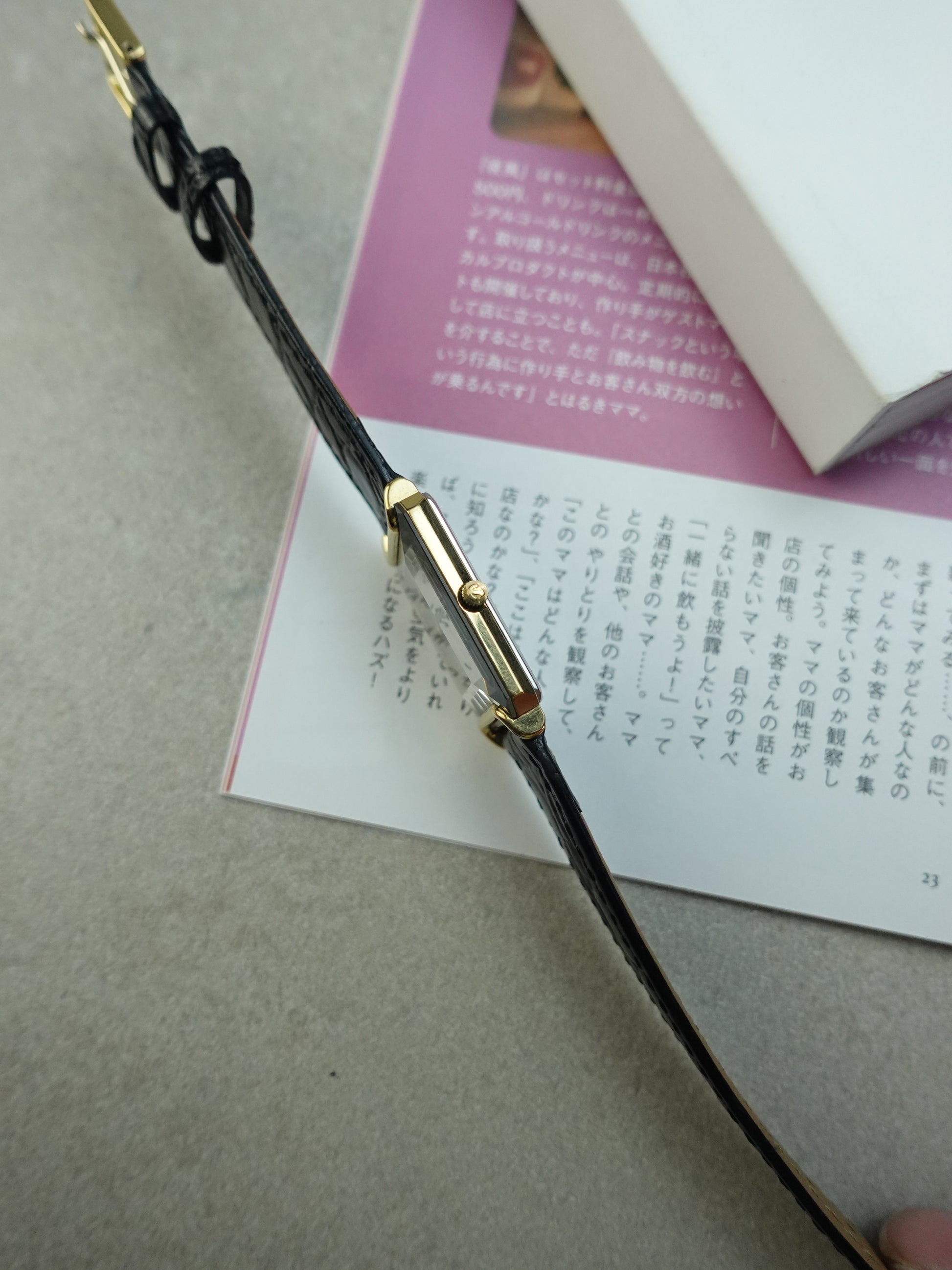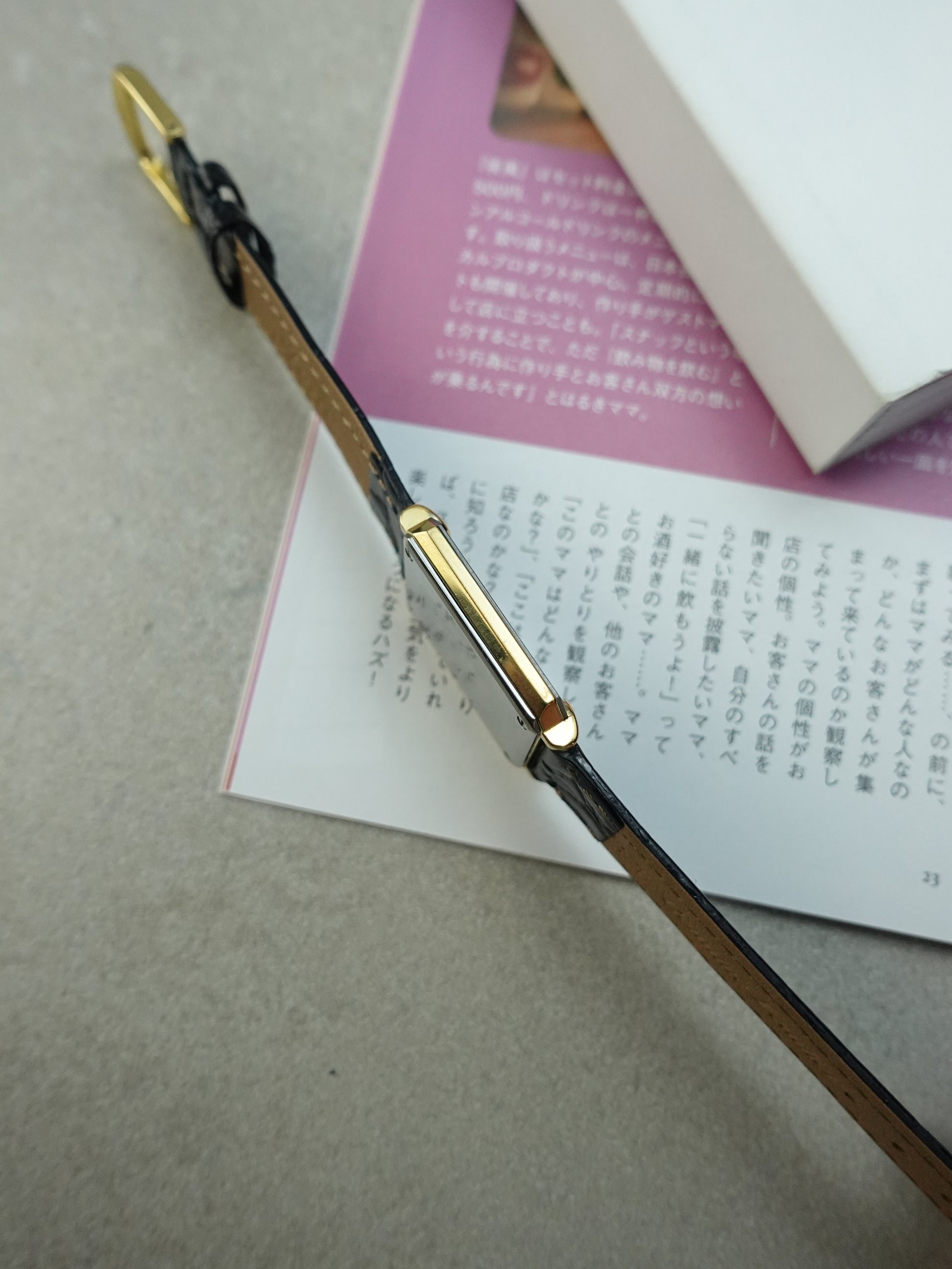 a very unique art deco cased rado tank, with a faceted glass design on all angles. stripe dial brings out the dynamic of the whole watch, with different reflection across the watch.
