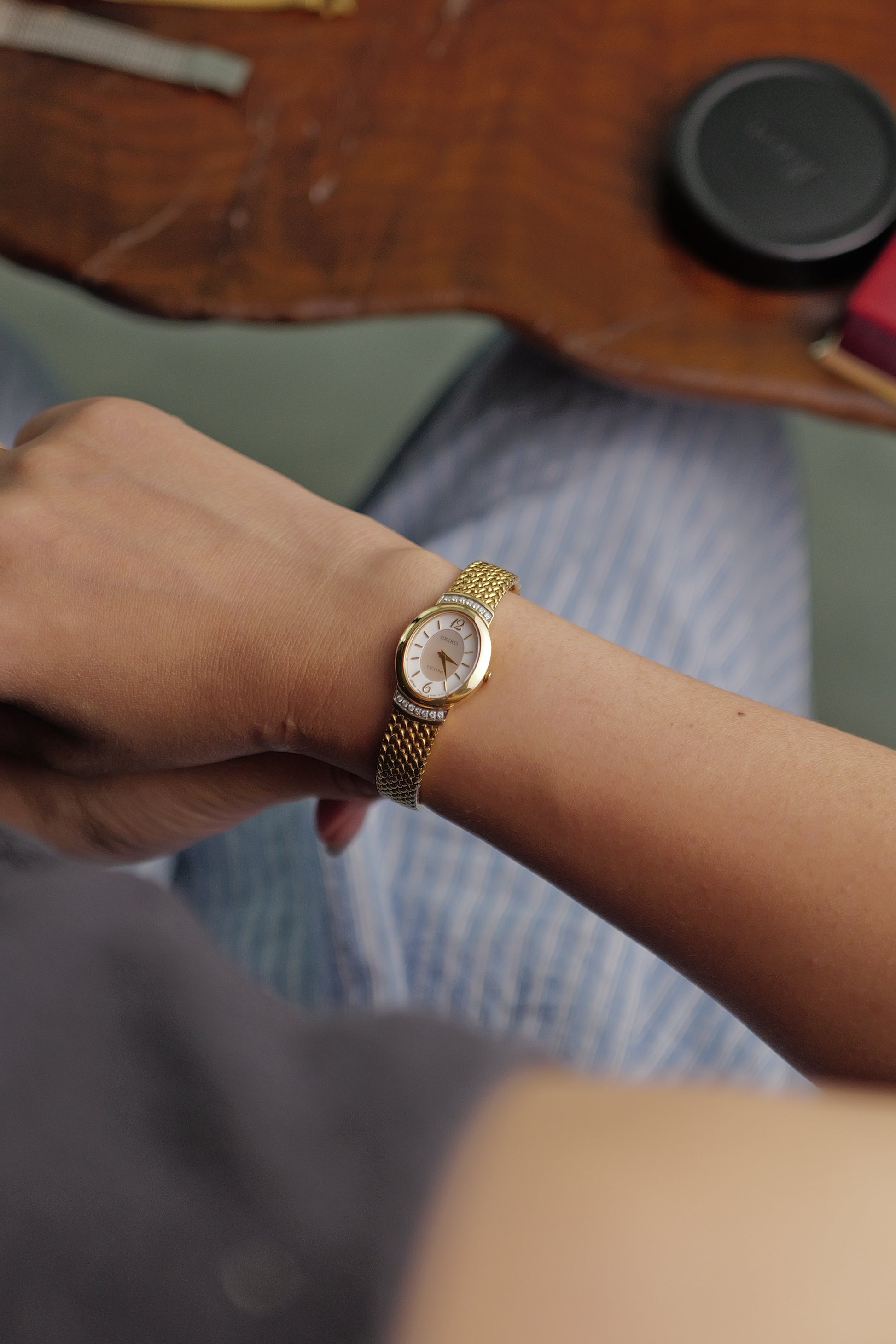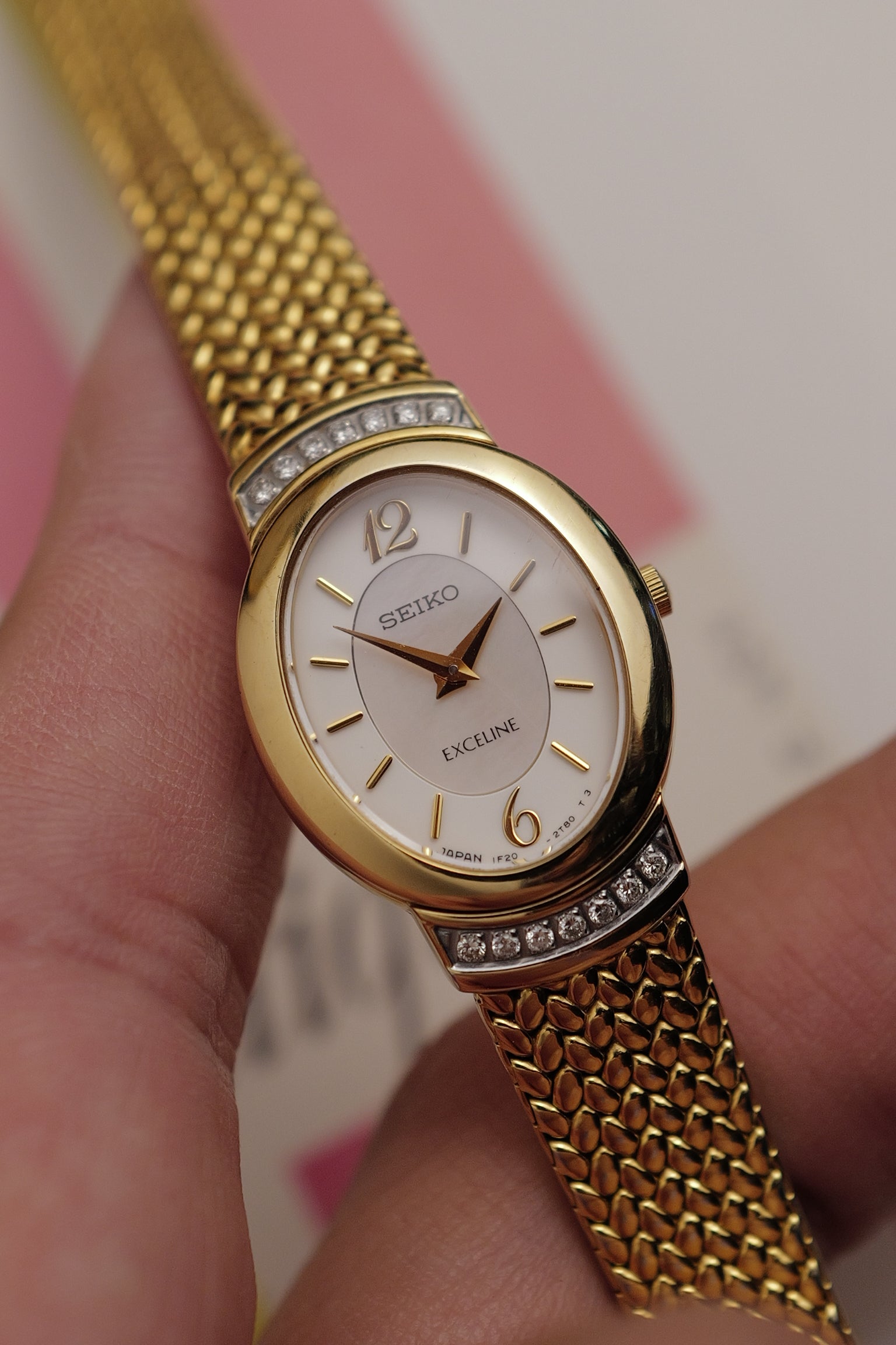 Seiko Exceline Mother of Pearl Oval w/ Diamonds Circa.1991