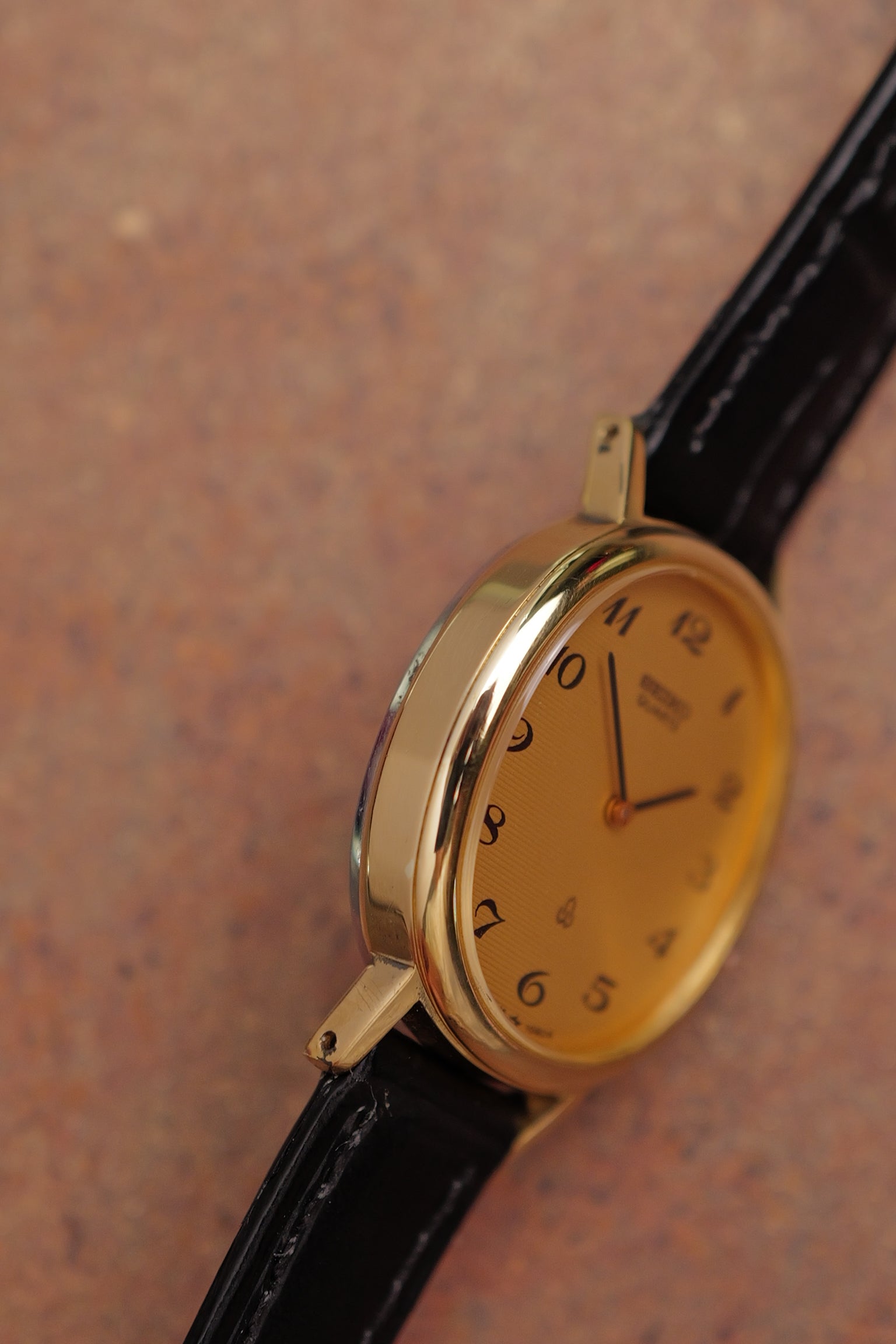 | Watch Summary | Flat yellow dial? look closely again! Multiple horizontal lines across the dial, on a breguet numeral font. One of seiko's earliest quartz endeavor as well, with its cal.16 quartz movement. |
