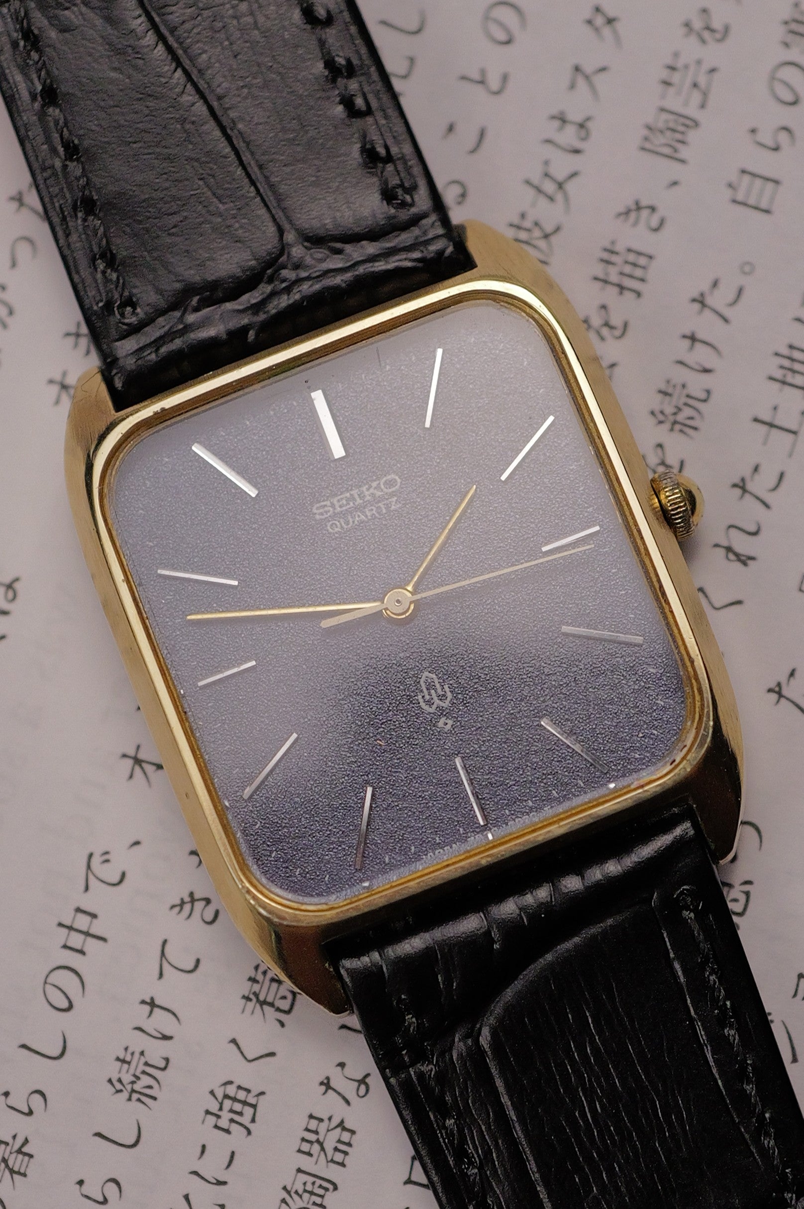 One of the earliest seiko quartz movement Seiko has ever made. Large, chunky and reliable! A simple opening of the caseback will show you how beautiful vintage quartz are. The watch comes with this beautiful blue texture dial with gold hands and subtle gold markers which is on the lighter side. A rare variation which colours dials rarely survive the test of time.