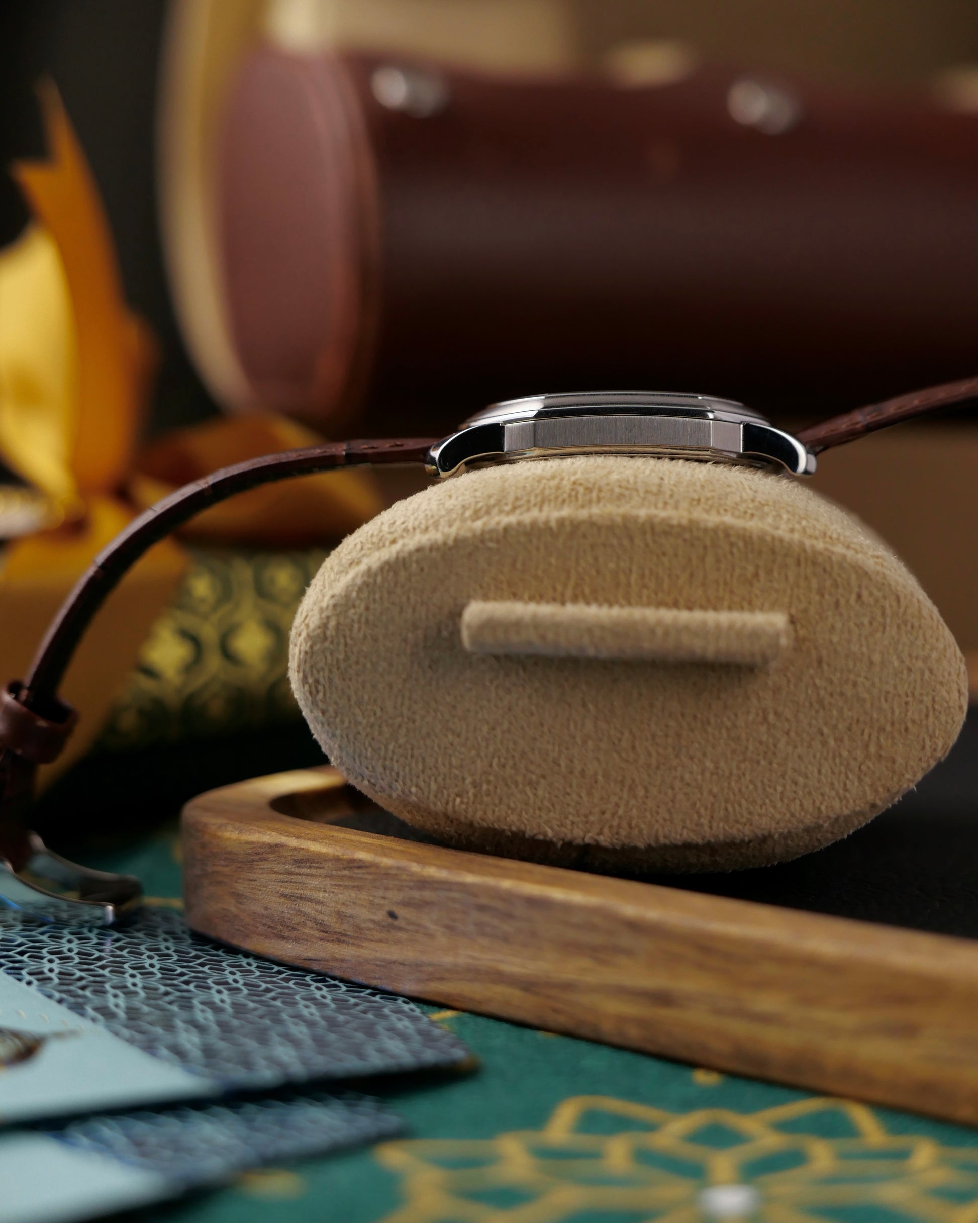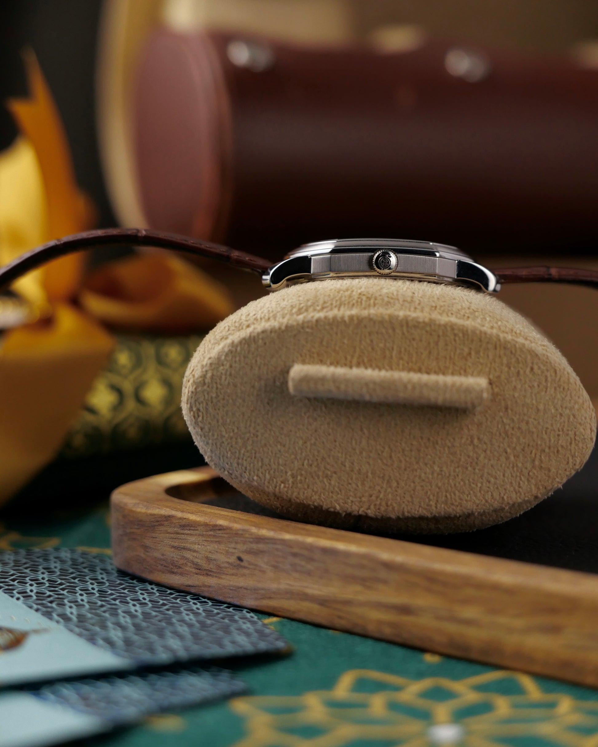 Under-appreciated series from Tiffany & Co., clearly inspired by Daniel Roth’s double-ellipse cases which debuted shortly prior. There is unconfirmed speculation that Roth may have been involved, given their relationship that began in the 80s when Tiffany was the sole American retailer for Roth-era Breguet. Whatever the link, these Mark Coupes iterate on Roth cases with their own stepped details and finishing, and improved fit from curved casebacks, crystals, and prominently downturned lugs. Substantial presence thanks to strong lugs and exquisite profile details that are architectural in their layering. On the wrist, feels dressy yet sporty, luxurious yet understated. One of our favourites, and judging from response, a crowd favourite too!