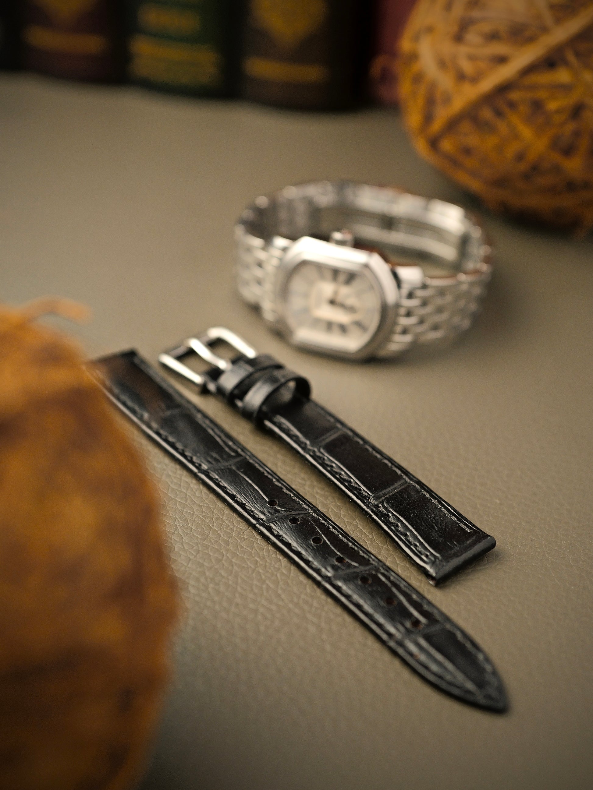 An increasingly popular series from Tiffany & Co, clearly inspired by Daniel Roth’s double-ellipse cases which debuted in 1989. There’s unconfirmed speculation that Roth may have had a hand in this watch, given his long relationship with Tiffany which began in the 80s when he was Technical Director of Breguet (at that time solely retailed in America by Tiffany). Whatever the link, these Mark Coupes iterate on Roth cases with their own details and multi-level finishing, as well as improved fit from curved casebacks, crystals, and prominently downturned lugs. Substantial wrist presence thanks to strong lugs and exquisite profile details that are architectural in their layering. On the wrist, feels dressy yet sporty, luxurious yet understated. This particular variation is the small size, with a classical petite seconds subdial for added visual interest, that lovely slinky 7-link bracelet, and we’re throwing in a bonus strap!