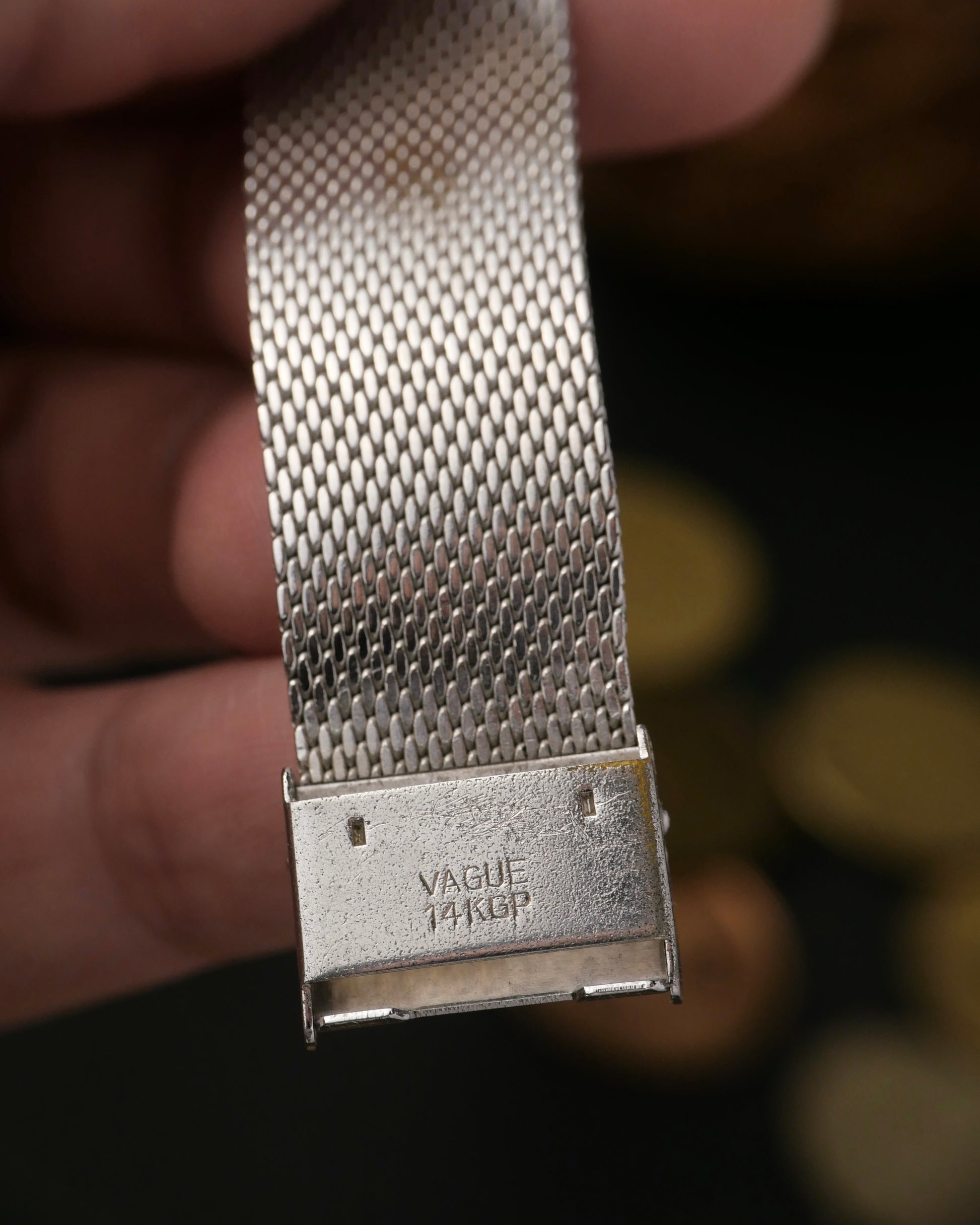 8.5/10 with light hairlines mostly on the case sides. This time we would totally condone a polish should you so desire: the case shape is simple, so there are no complex bevels/edges at risk with a light polish on the sides. Or leave it for full vintage vibes! Original signed crown. The lacquered dial has some spidering, a clear sign of period-correctness and originality, whilst adding even more character to the watch. Hands, faceted markers and crystal are clean. Aftermarket mesh bracelet used but in good condition (appears to be white gold plated as indicated by the “14KGP” hallmark). Movement excellent with to-spec power reserve, strong amplitude, low beat error and accurate to ±30 secs/day averaged from 5 timegrapher positions.
