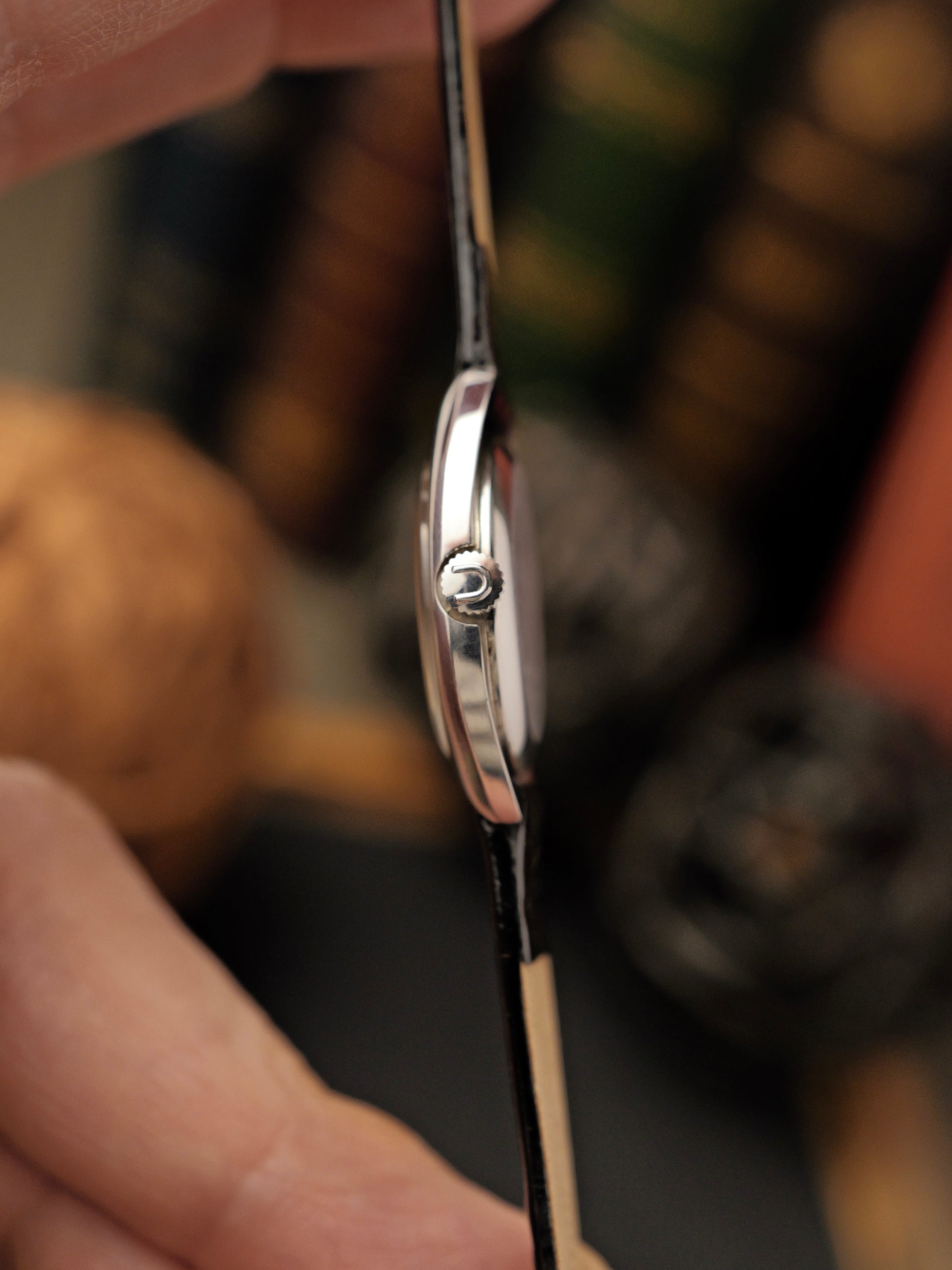 A too-cute-for-its-own-good small version of the revered UG White Shadow designed by Gerald Genta (renowned for the Polerouter, Royal Oak and Nautilus). This line encompassed a variety of case shapes, including this classic cushion case. Ultra-thin, evocative of the 60s, and with the star of the show… a lacquered dial in the style of vibrant lapis lazuli stone. Followers will know our love for UG. Once a high-end brand, crushed by the quartz era, but on the verge of revival under Breitling. Beyond hyped models like Polerouters/Tri-Compax are gorgeous, dressy treasures like this, waiting to be discovered at amazing value. Absolutely exquisite on female/small wrists and oozing the charm of the 60s design zeitgeist.
