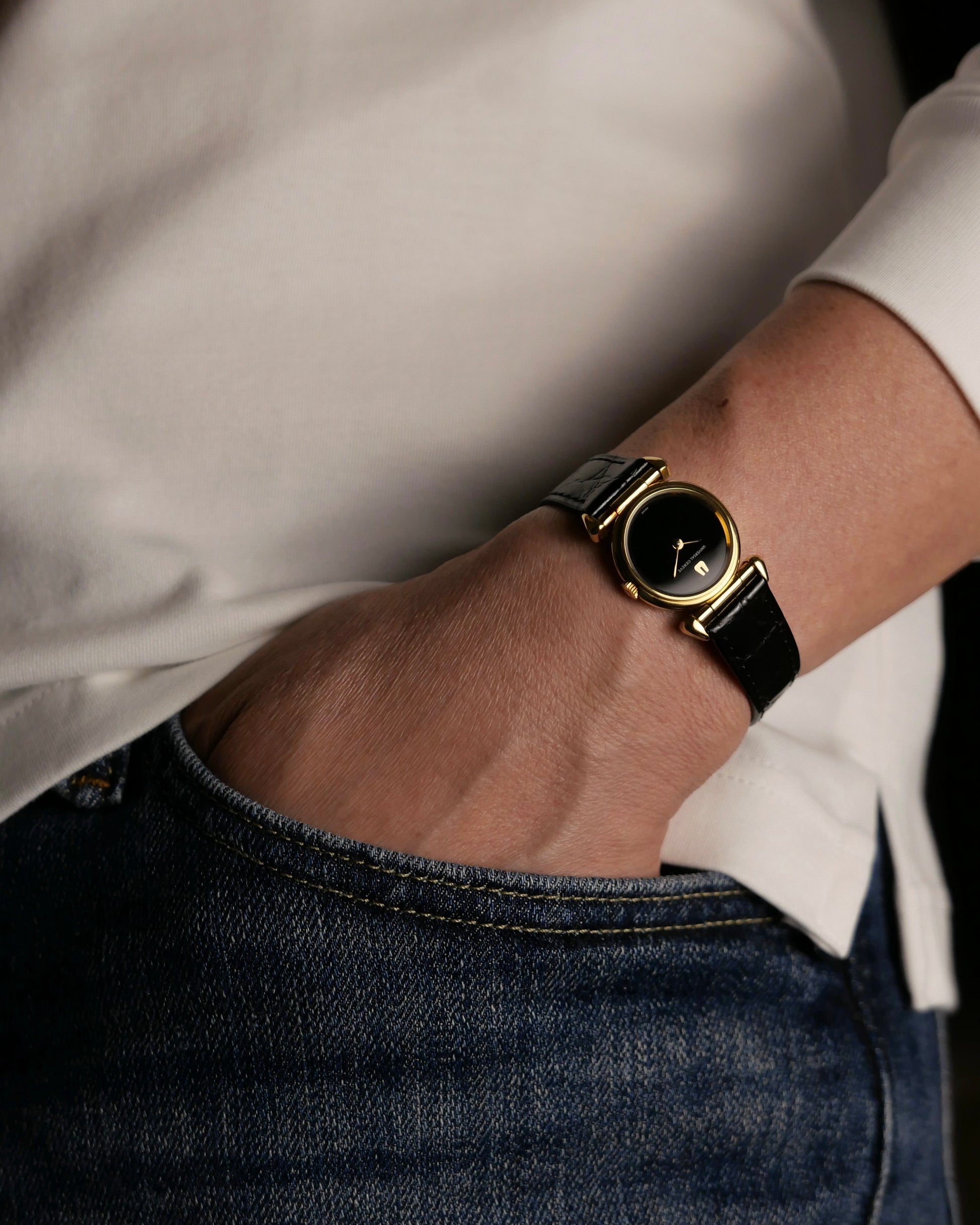 What’s better than interestingly shaped lugs? Lugs hinged to conform to your wrist, and reversible for two different looks! Uniquely elegant on the wrist with a touch of evocative classicism, and super comfortable at that. The rest of the watch is lovely as well with a circular case, exquisite deep black index-less dial, some pop from the polished rehaut and golden hands/applied UG logo. Oh, and it’s powered by a mechanical movement as well. Followers will know our love for UG. Once a high-end brand, crushed by the quartz era, but on the verge of revival under Breitling. Beyond hyped models like Polerouters/Tri-Compax are dressy treasures like this, waiting to be discovered at incredible value.