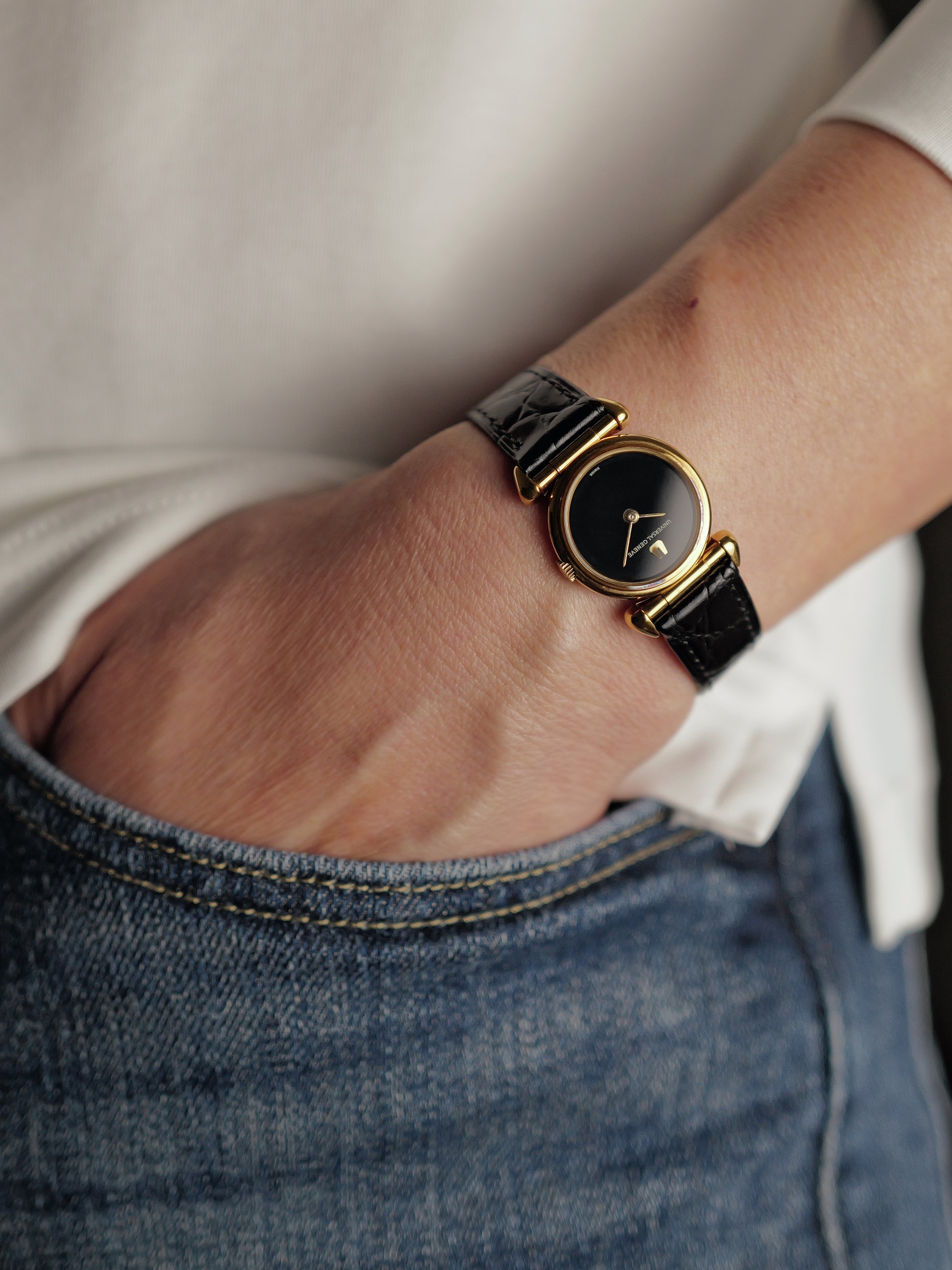 What’s better than interestingly shaped lugs? Lugs hinged to conform to your wrist, and reversible for two different looks! Uniquely elegant on the wrist with a touch of evocative classicism, and super comfortable at that. The rest of the watch is lovely as well with a circular case, exquisite deep black index-less dial, some pop from the polished rehaut and golden hands/applied UG logo. Oh, and it’s powered by a mechanical movement as well. Followers will know our love for UG. Once a high-end brand, crushed by the quartz era, but on the verge of revival under Breitling. Beyond hyped models like Polerouters/Tri-Compax are dressy treasures like this, waiting to be discovered at incredible value.