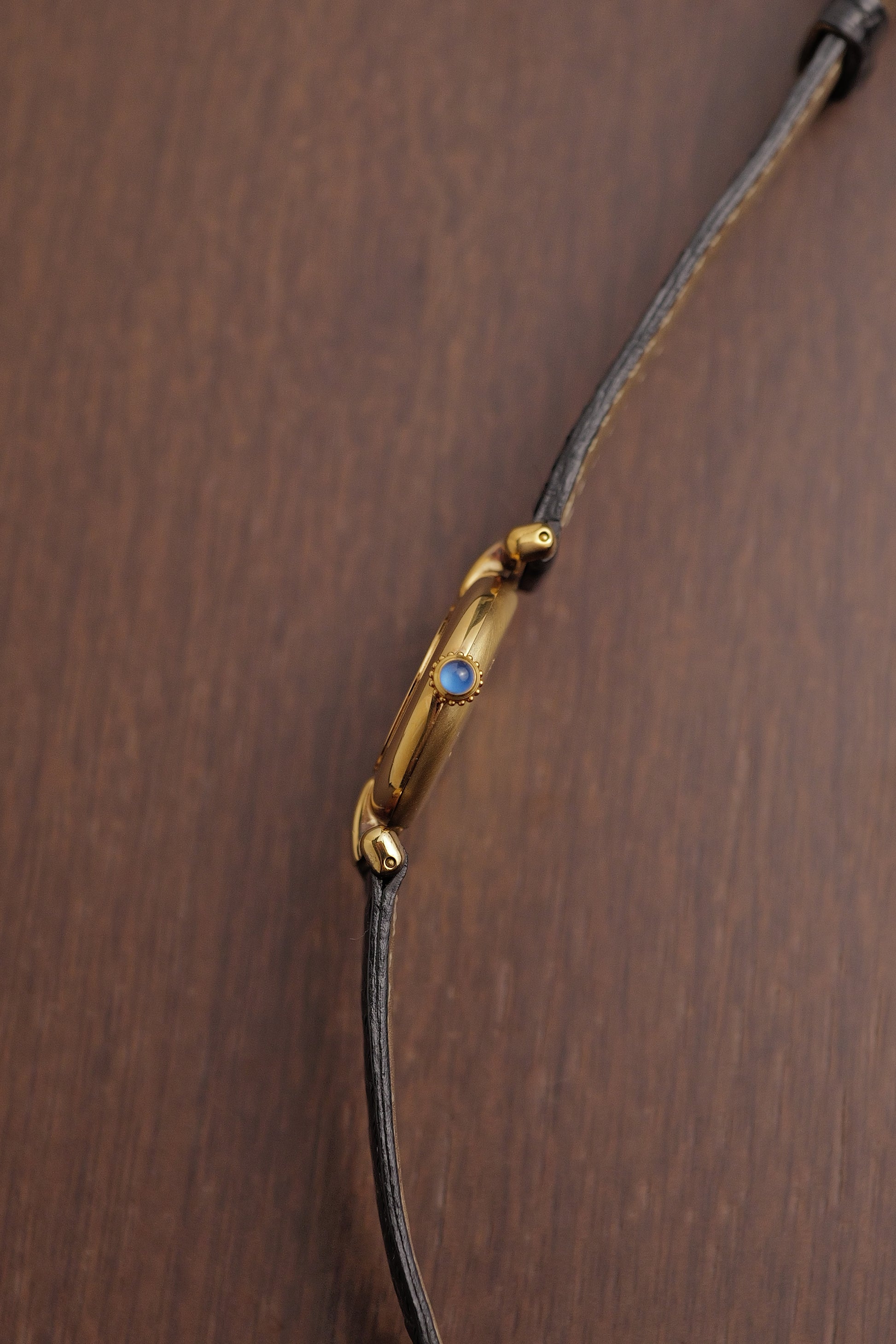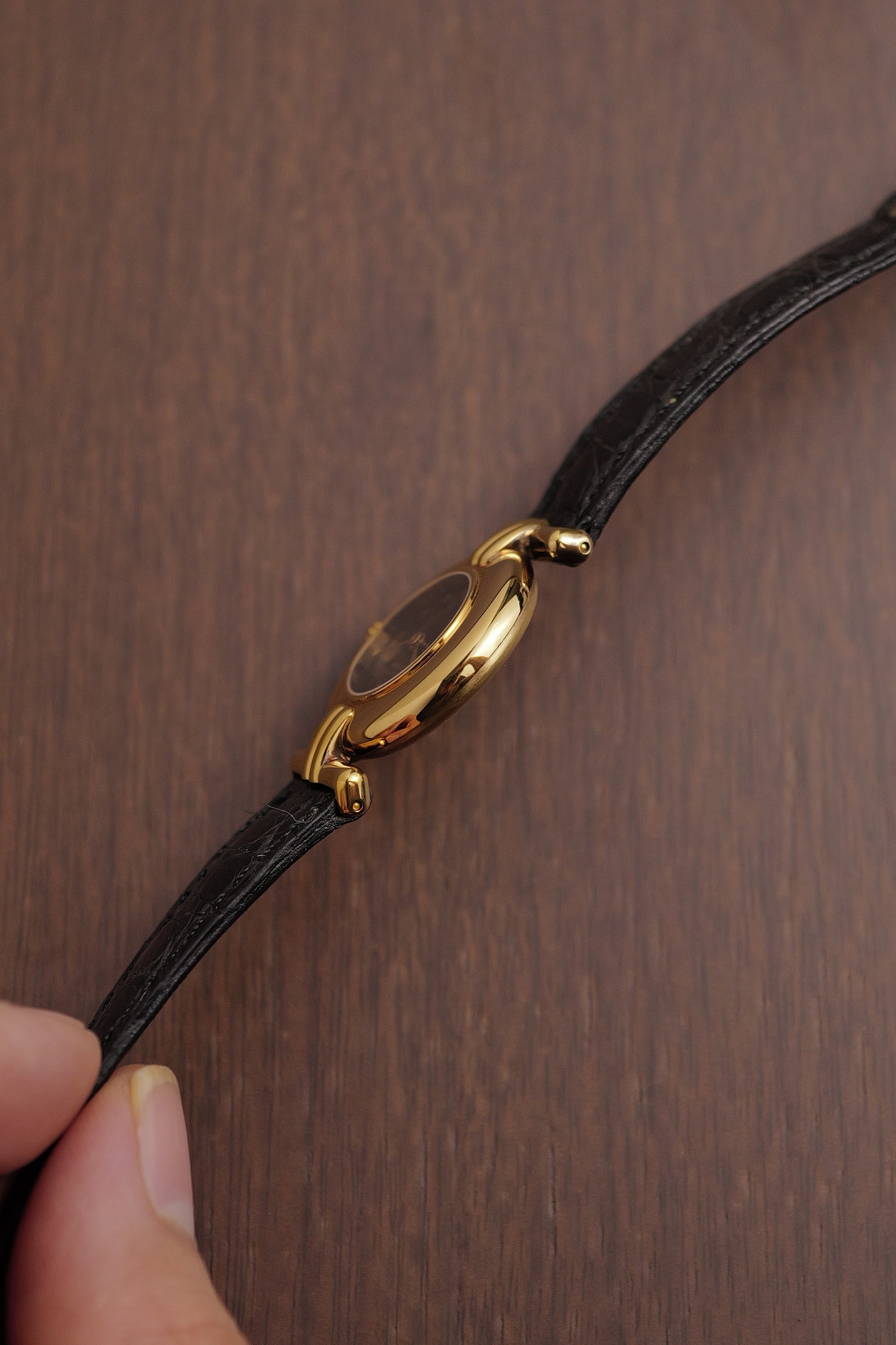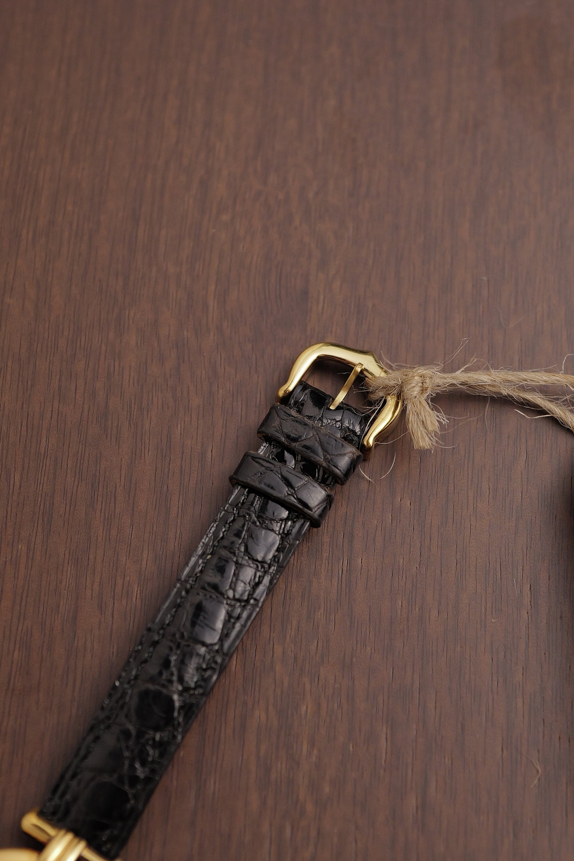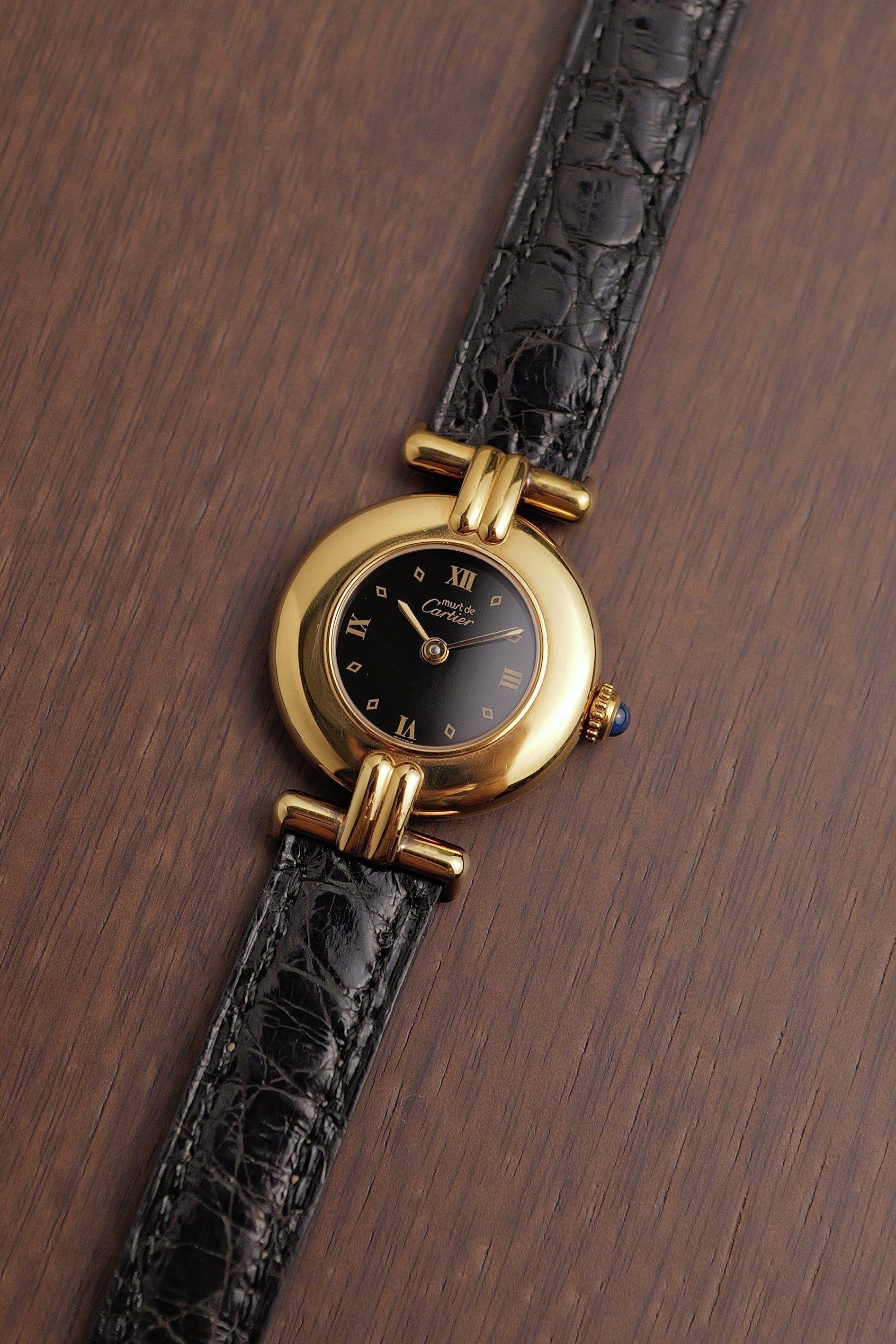 | Watch Summary | A gorgeous Piece from the 80s, the Cartier Colisee has various dial configuration and this specific version comes in a lacquer black finish. 4 roman markers in balancing the dial. The black on gold finish is simple and effective, without the distraction of numerals . Comes attached with its original strap and buckle. Comes with a cartier original box. |