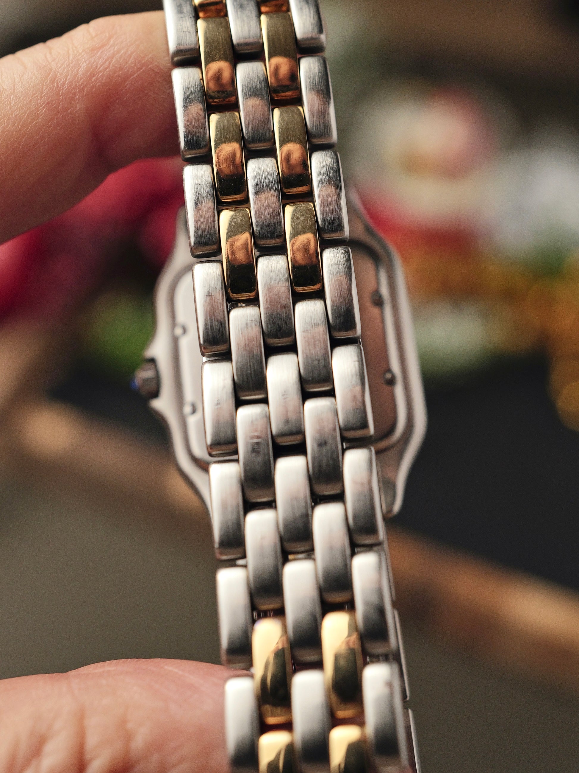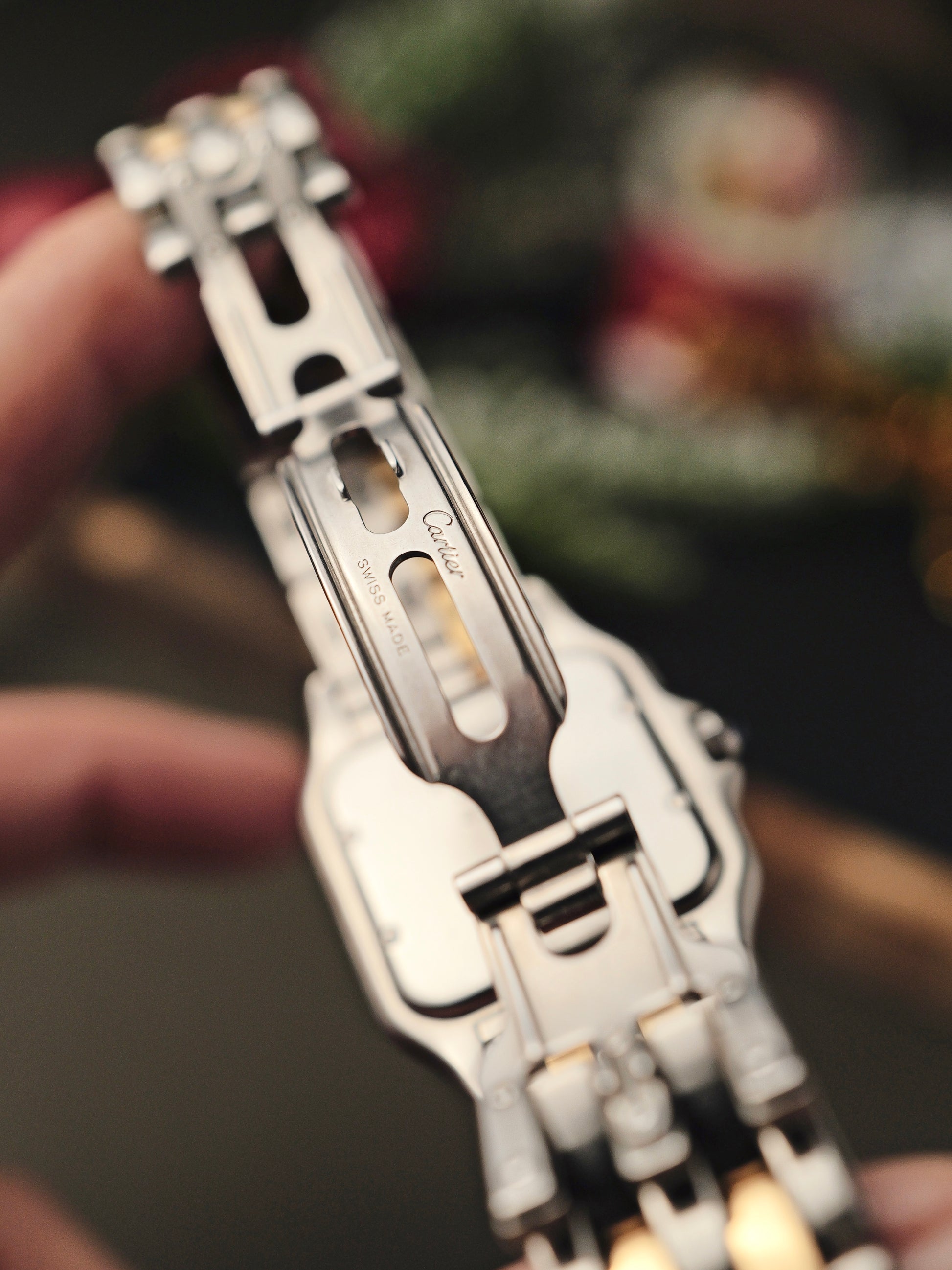 Original Cartier 5-link “two row gold” steel bracelet with concealed butterfly deployant (links fit up to 18cm wrists)