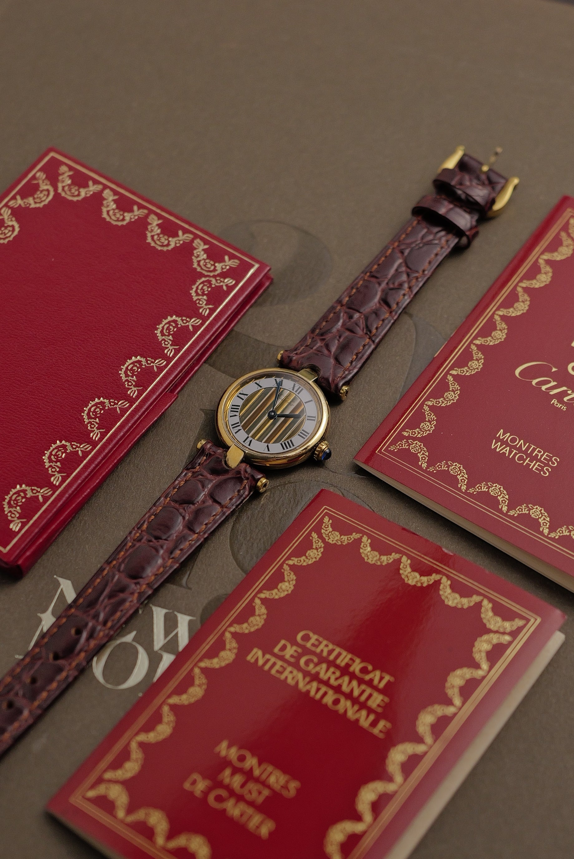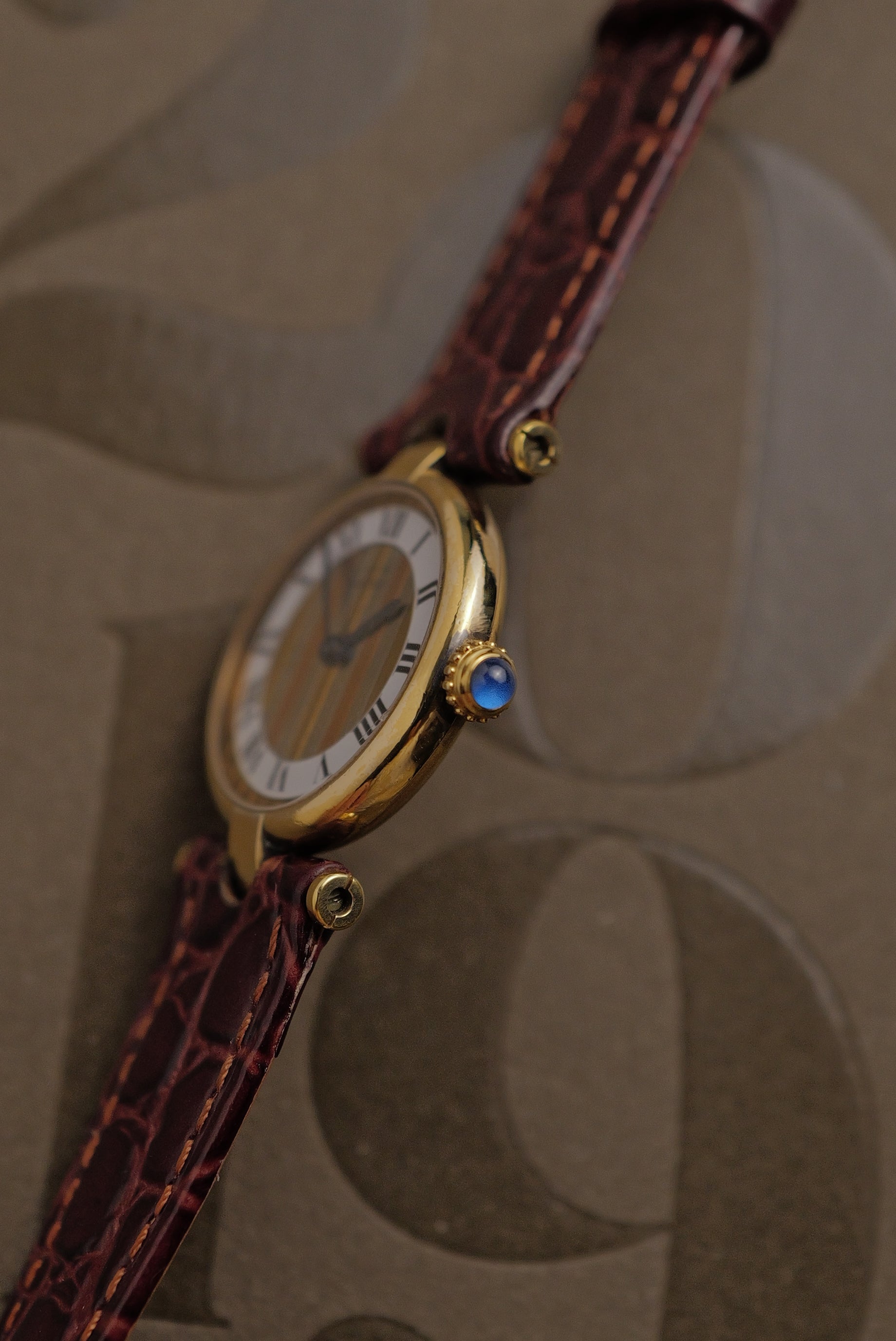 | Watch Summary | A trinity dial vendome in ladies SM size. comes with its original box and papers. A gorgeous lacquer dial without any signs of cracks. Paired on a custom stamped croc strap and original buckle. Extremely gorgeous piece in the curation today! |