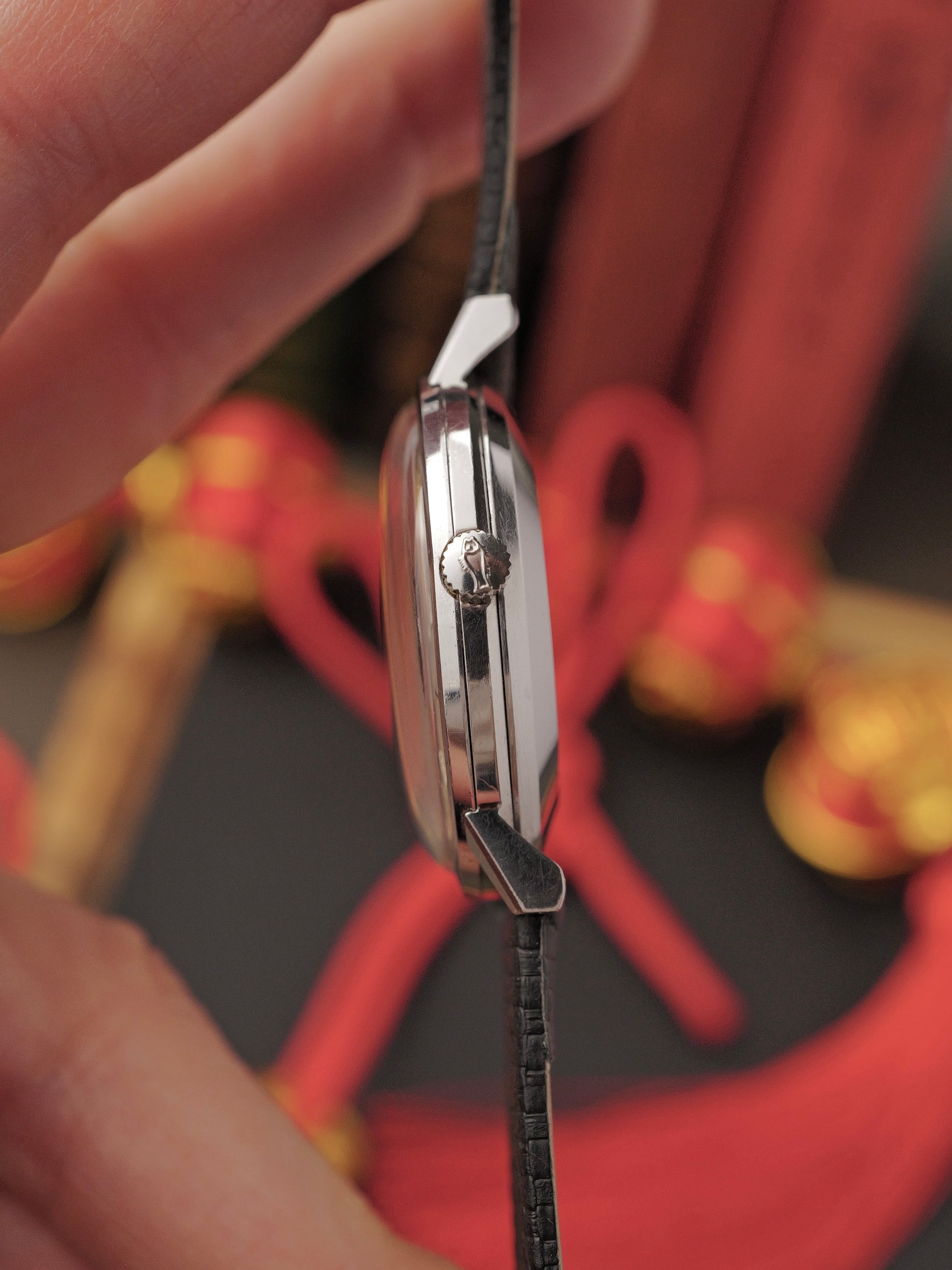 Deceptively simple but steeped in history and tech. Launched 1963 at the height of IWC’s dress watch era. Classical, minimalist and oversized (for the time), this was a practical, understated high-end all-occasion piece. Water resistance was a key feature (when new), marked by an embossed fish on the crown. Coming from a very early batch, the fish here was detailed with fins, later replaced by simpler stylised fish and then dropped altogether as water resistance became commonplace. Running the legendary Cal. 8541 from 1964, the third iteration of IWC’s 85-series calibres, considered one of IWC’s finest automatics with a landmark Pellaton bi-directional self-winding system named after the brand’s Technical Director. Also the calibre of choice powering subsequent iconic Ingenieurs and Yacht Clubs. But all this aside, it’s hard to deny its purity and timelessness on your wrist, from the slim rounded case profile to the domed warm silver sunburst dial, to the applied dot minute markers, to the period IWC script. Serviced and warrantied. Just exquisite!