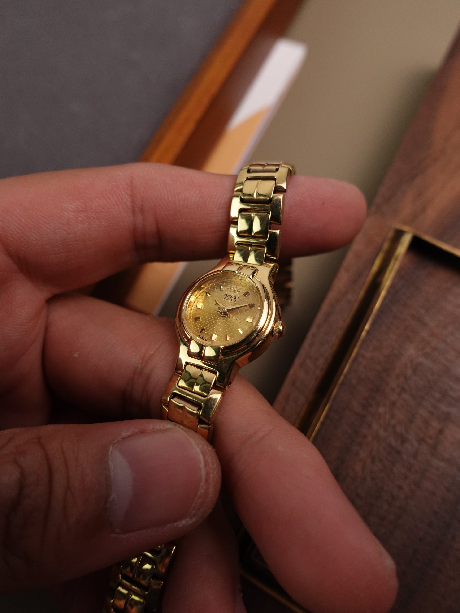 A relatively short lived series, the seiko galaxy only had a few years of production before it was ended. its watches usually came with a crown like logo on the 12 o clock, and on this variaiton it comes with triangular markers on the others.
