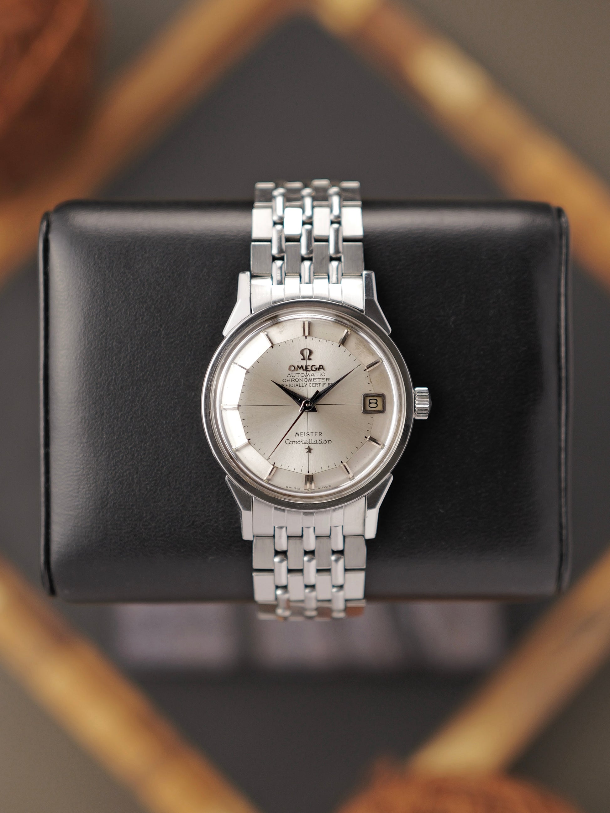 Before Speedmasters, the most notable Omegas were Constellations… Omega’s first chronometers to reach mass production as a response to Rolex Datejusts and a collector favourite till today. All Constellations were chronometers and feature a caseback medallion with an observatory and 8 stars signifying the 8 awards Omega won prior. Gerald Genta designed these “Connies” and this one is particularly collectible with the trifecta of a pie pan dial, dog-leg lugs and crosshair dial graphic. The headline here is the Meister stamp, a rare subset of these dials that were co-signed with one of Europe’s foremost jewellers/watch retailers. In great condition for its 65 years of age and a well respected vintage must-have.