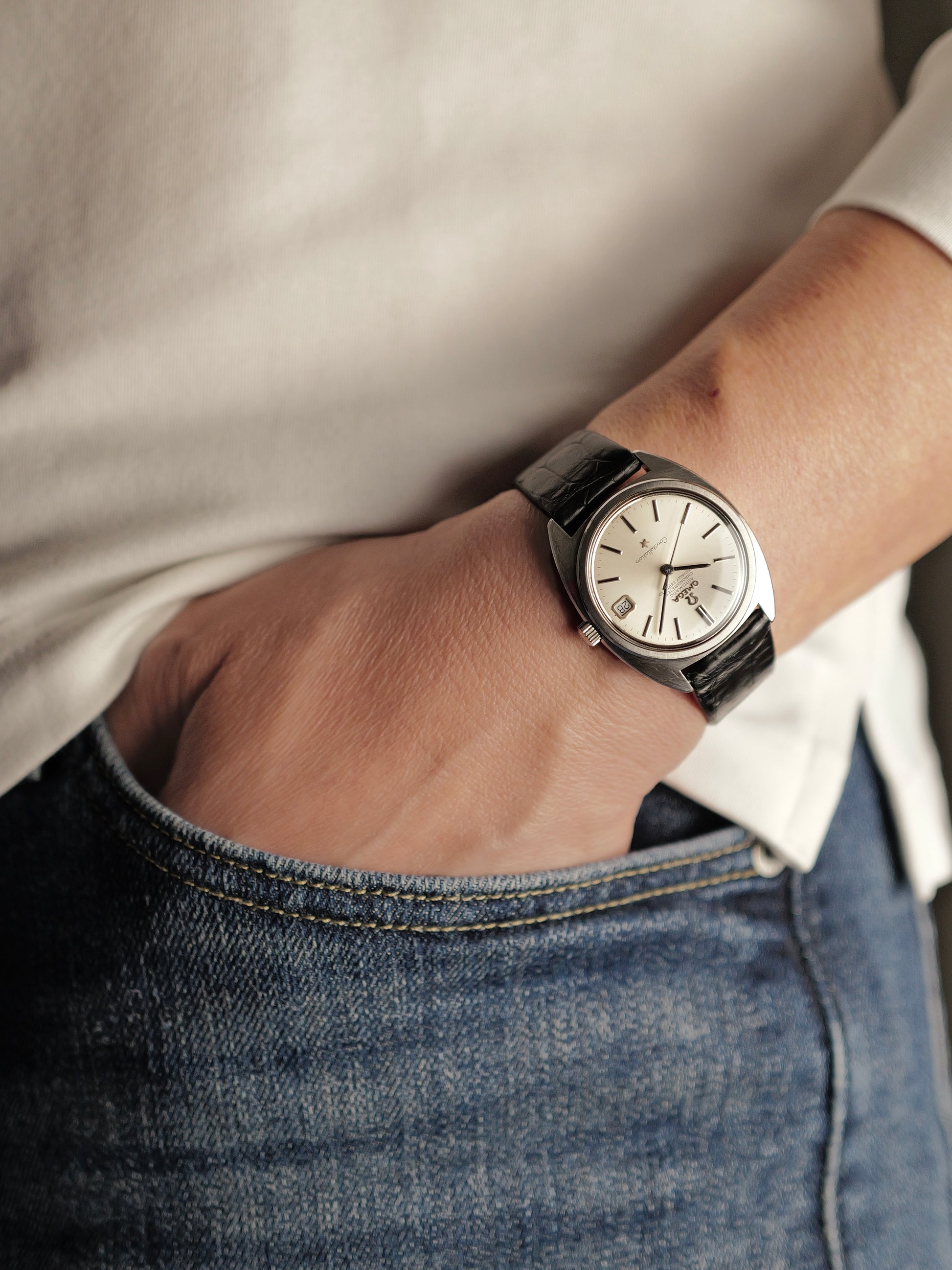 Before Speedmasters, the most notable Omegas were Constellations—Omega’s first chronometers to reach mass production and a collector favourite till today. All Constellations were chronometers and feature an engraving on the caseback with an observatory and 8 stars signifying the 8 awards Omega won prior. Gerald Genta designed the 1st pie-pan ones, as well as this 3rd case variant dubbed “C” for the case sides resembling two mirrored Cs. A distinctive style with great sporty presence pre-dating the popular Seiko turtles. The example here is from 1969, the second C variant with an updated calibre and ultra-versatile all-silver presentation and exceptional legibility with black hands and faceted indices and onyx stone inlays. In great condition for its age and destined to serve as your trusty timekeeper for many years to come.