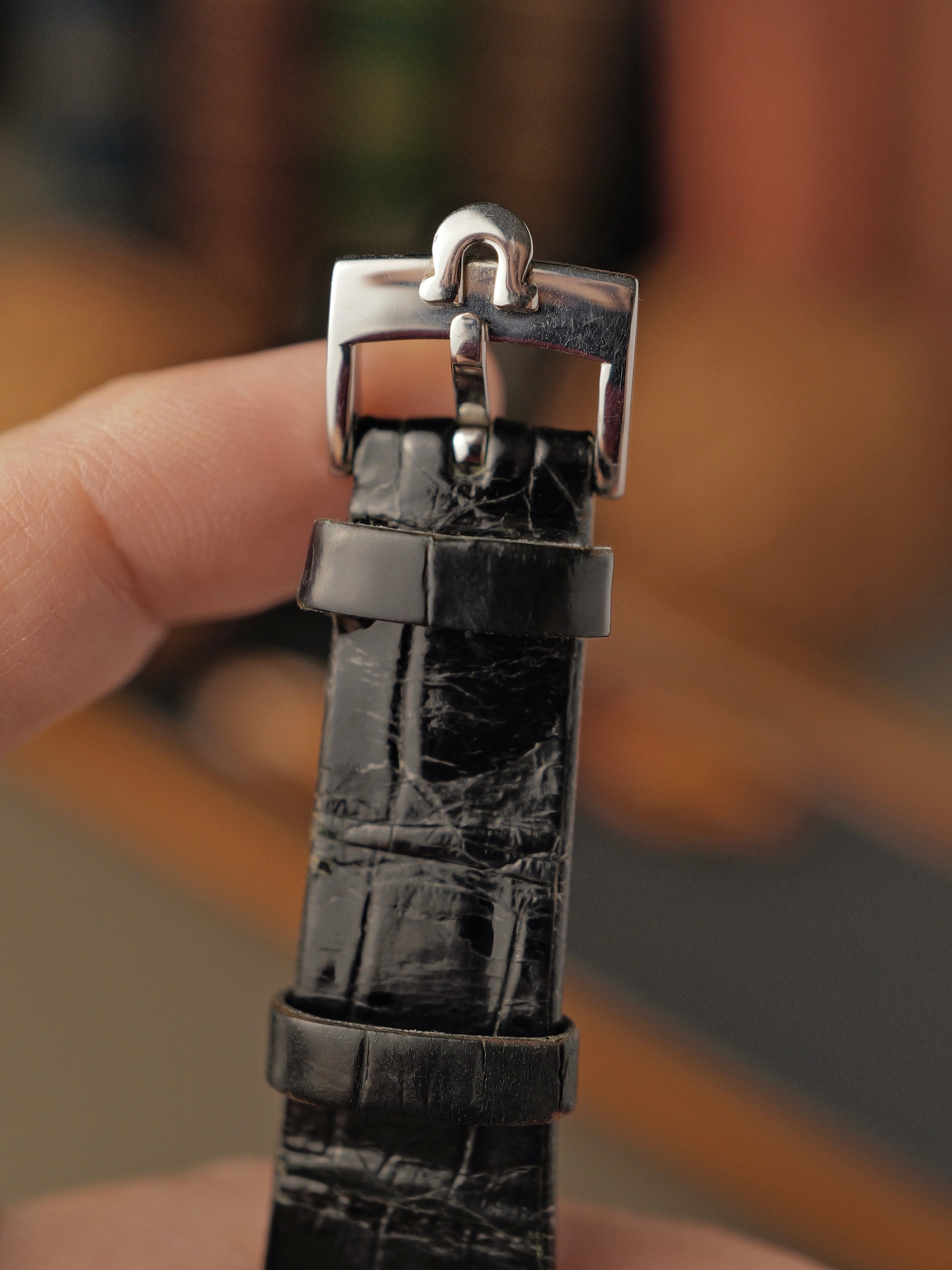 Used aftermarket matte black croc-embossed with Omega buckle (14mm)