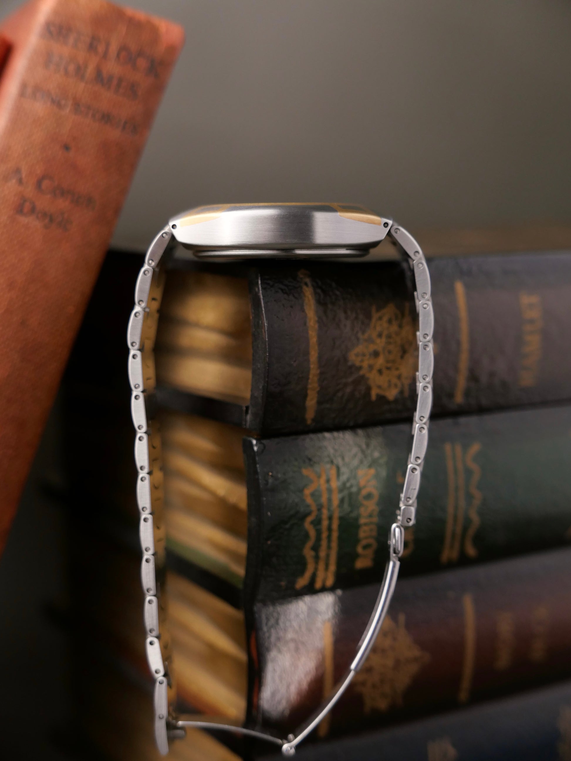 Gerald Genta is lauded for designing the Royal Oak, Nautilus and Polerouter. But in his portfolio are other course-altering gems like this. When a PTSD-riddled late 70s Omega was in dire need of reinvention, Genta was enlisted to help set a new path. Launched in 1981, this was a bold slice of Omega history for against-the-grain creativity and metallurgic innovation, evolving into the “pre-Bond” SMP 200M and beyond. Features an integrated bracelet and 2mm thick 18k gold inlay, so seamlessly fused into the steel case it’s downright sorcery. Omega never revealed the secret to how this was done, and probably never will. This version is a 12-hour, 1/10 second, split-timing chronograph; the most complicated analog quartz Polaris. When everyone is wearing the usual sports suspects, strap on something they’ve never seen, with real character, and a conversation piece as much as it is a sports piece.