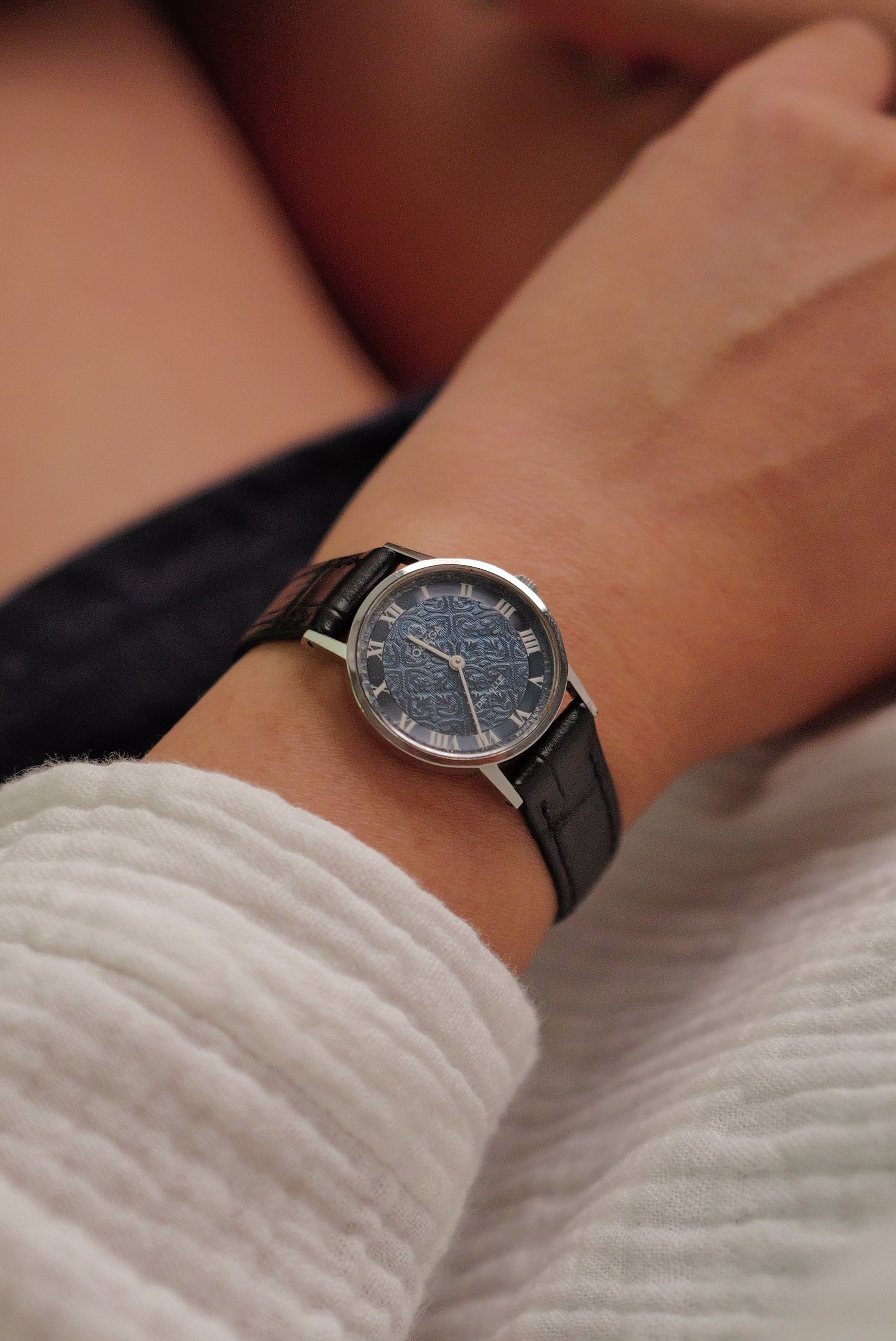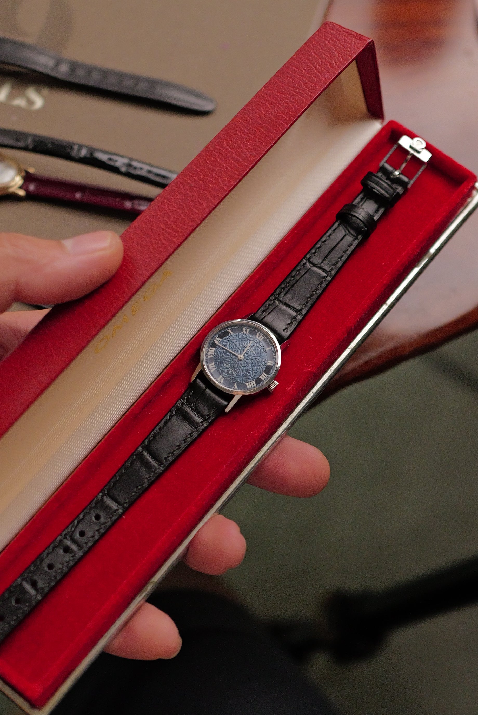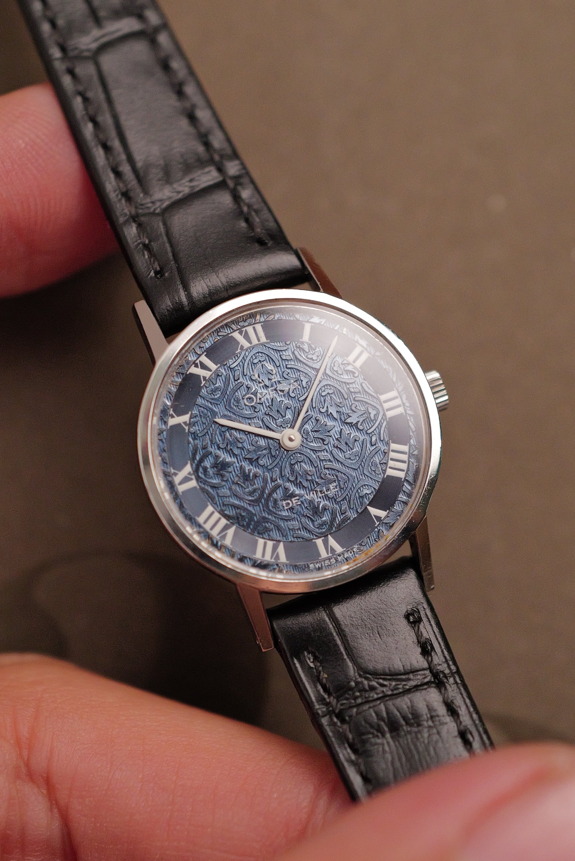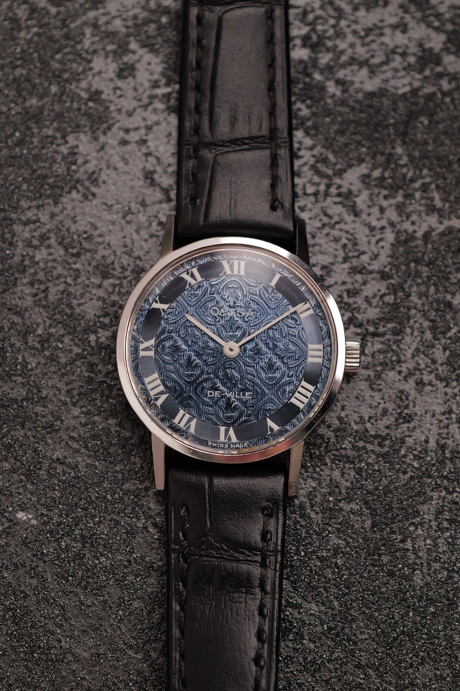 A beautiful omega made during the 70s, with a beautifully stamped/engraved dial. Mini floral repeating motif patterns around the dial, complimented by its iconic roman numerals. internally, the Omega 625 watch movement was produced from 1973, acting as one of the workhorse movements from omega. watch movement has been regulated to a +-20s/day on average. Comes attached on a new strap with original buckle and watch |