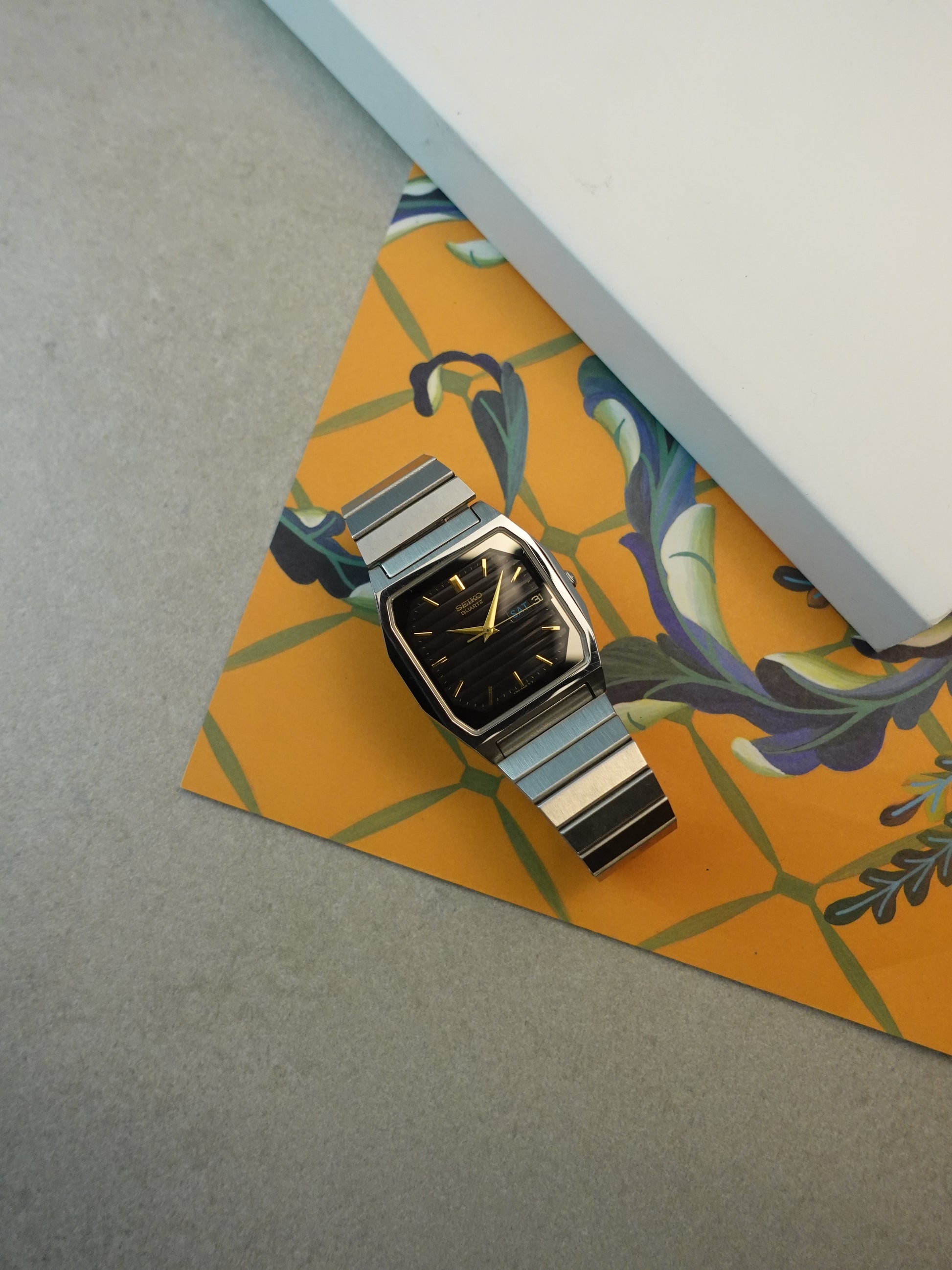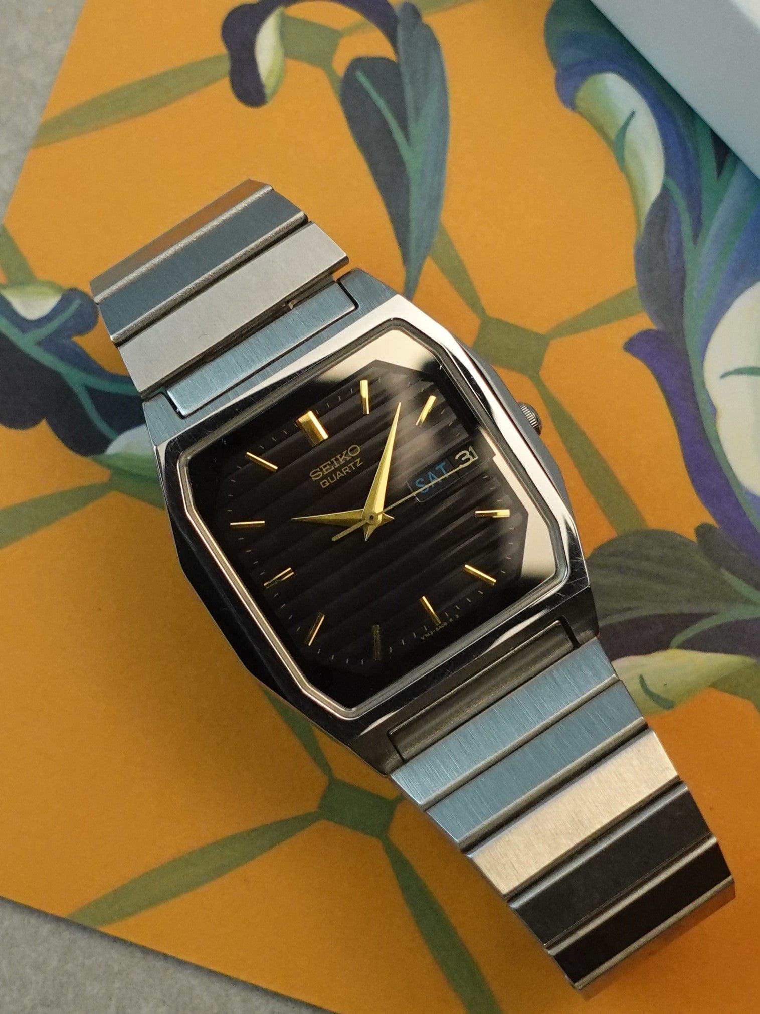 The seiko Quartz in its chunky yet wearable TV case, which is a seiko icon on its own! ( millennials TV didn’t look so flat in the past haha). Dial is a shutter-like design, giving it a very industrial feel to the watch. It sized at 39mm yet to my surprise all my previous buyers were ladies!